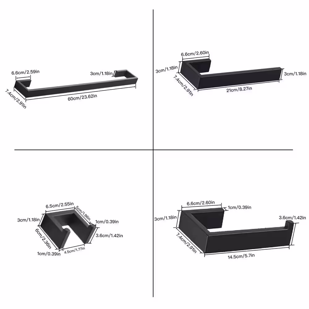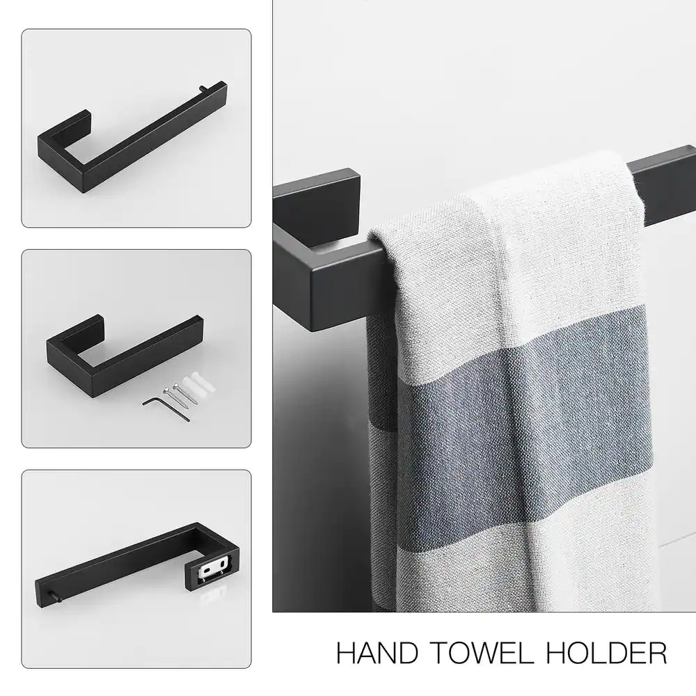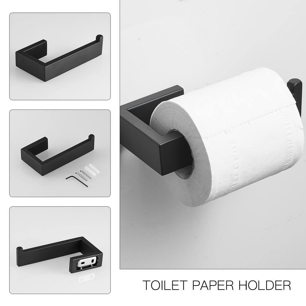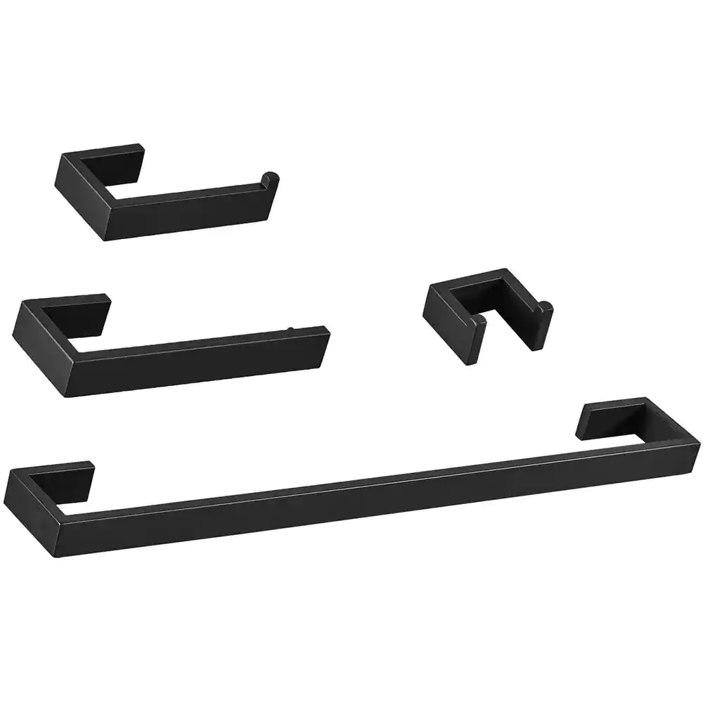 BWE 4-Piece Bath Hardware Set in Matte Black with Towel Ring Toilet Paper Holder Towel Hook and 24 in. Towel Bar