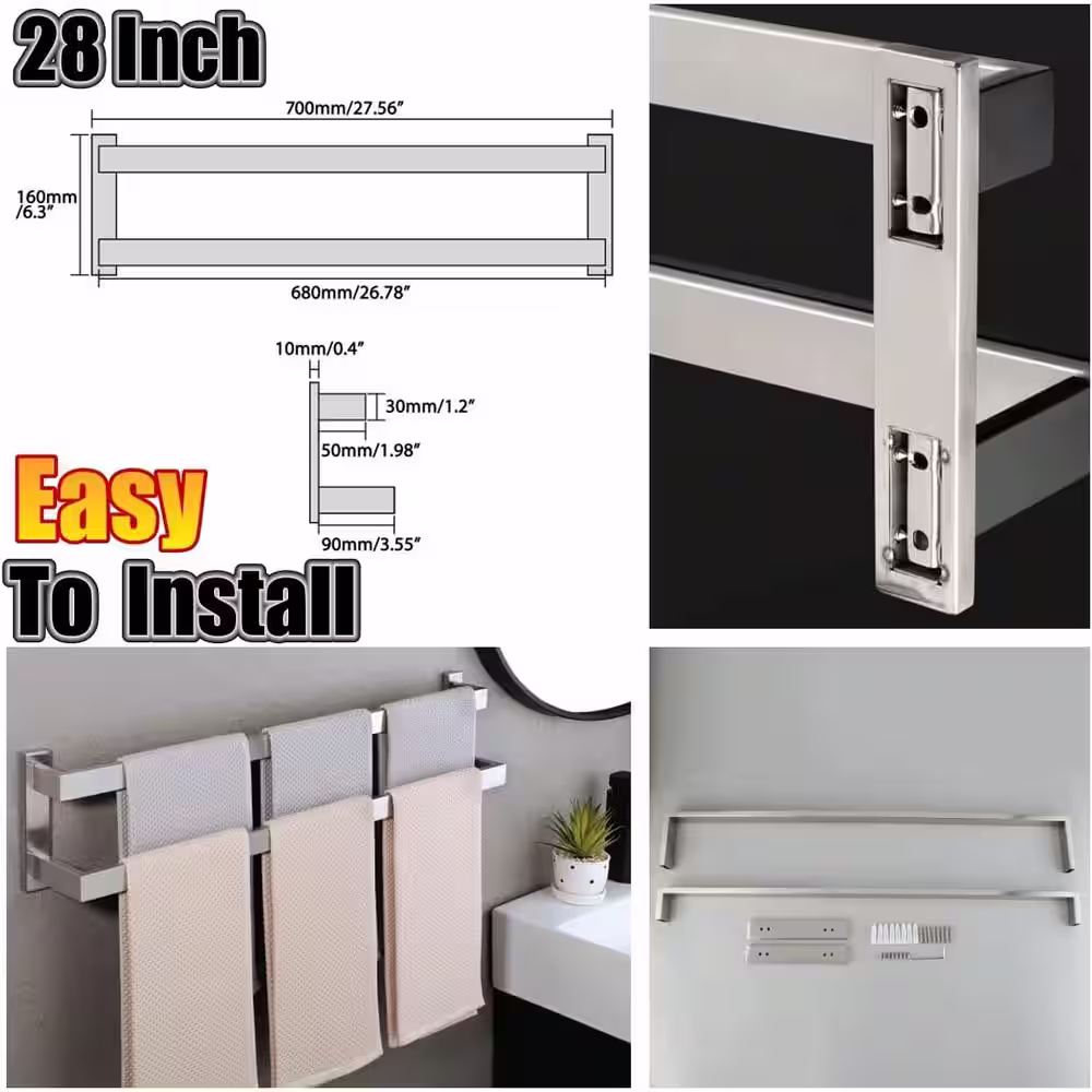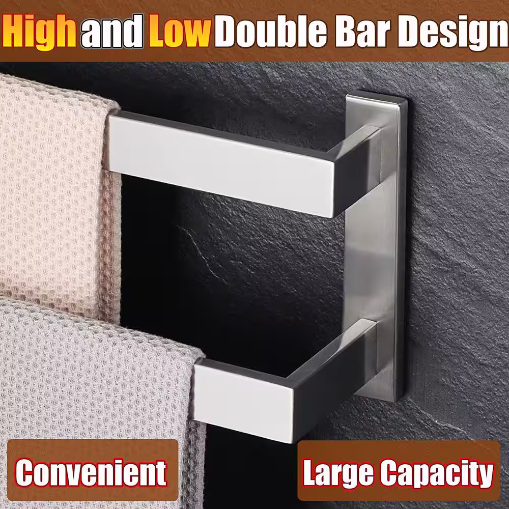 None Towel Rack, Bathroom Toilet Towel Rack, Wall-Mounted Towel Rack, 2 Stainless Steel Towel Racks