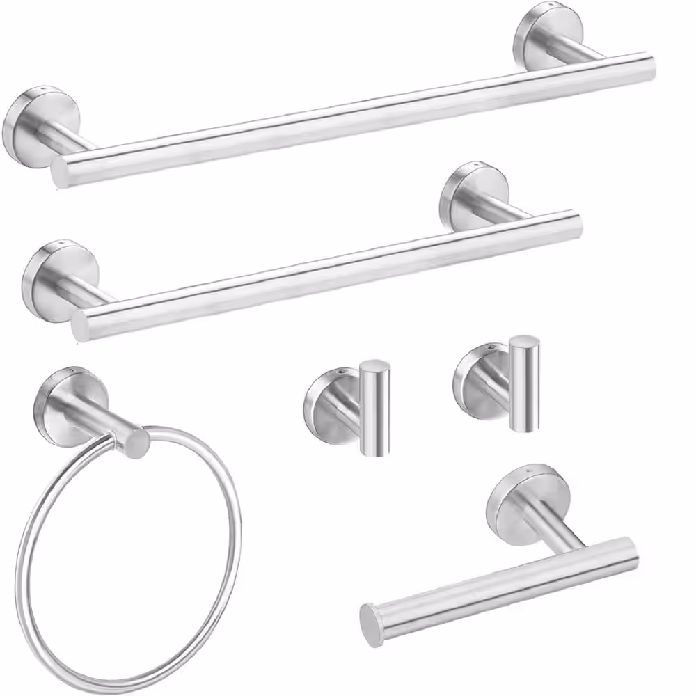 None 6 Pack Stainless Steel Wall Mounted Bathroom Towel Holder Rack Set in Brushed Nickel