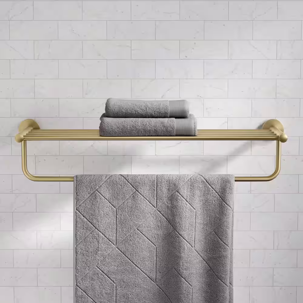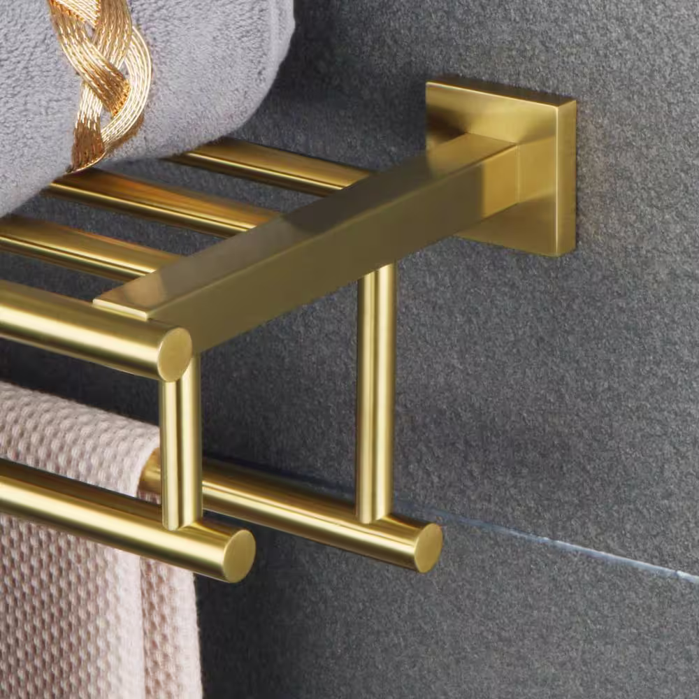 None 24 in. Wall-Mounted Lavatory 304 Stainless Steel Towel Rack with 2 Towel Bars in Brushed Gold Finish
