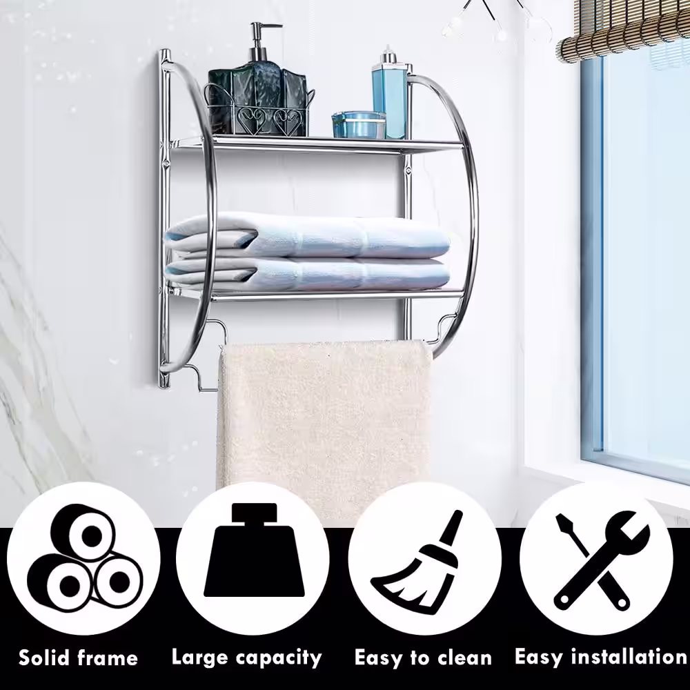 CASAINC 2-Tier Wall Mount Shower Organizer Storage Towel Rack in Chrome