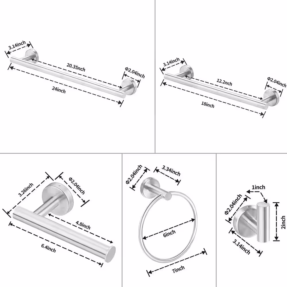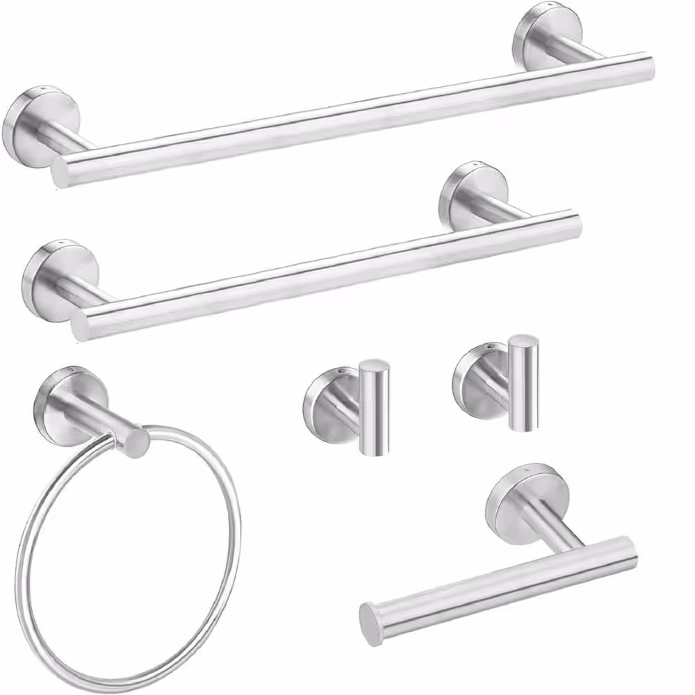None 6-Piece Wall Mount Stainless Steel Bathroom Towel Rack Set in Brushed Nickel