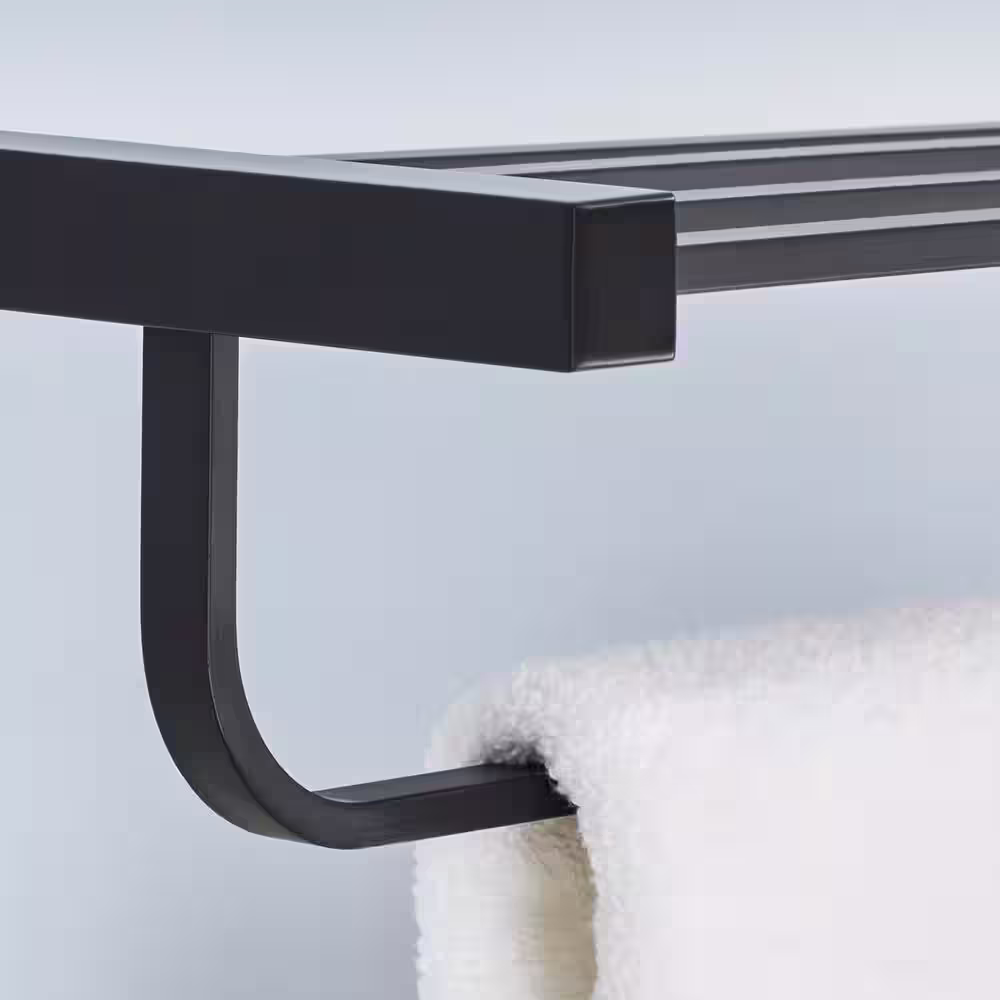 Glacier Bay Farrington 21 in. Wall Mount Towel Rack with Towel Bar in Matte Black