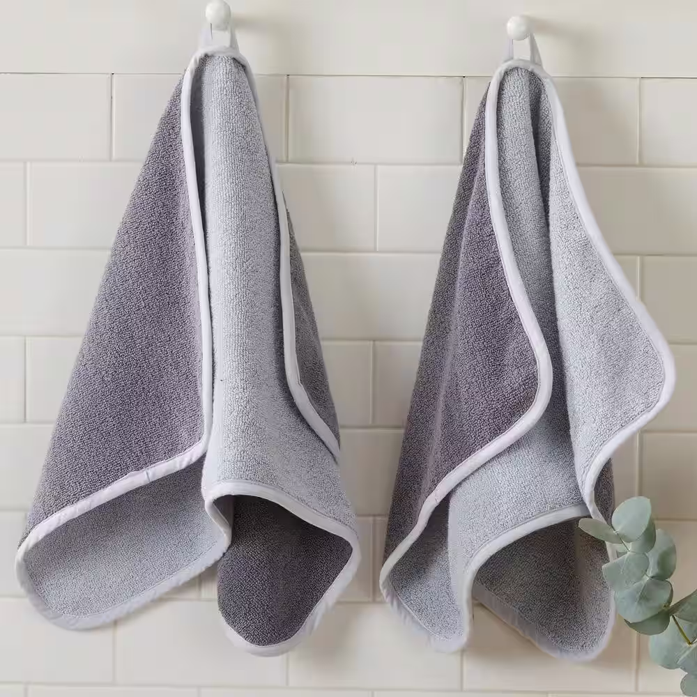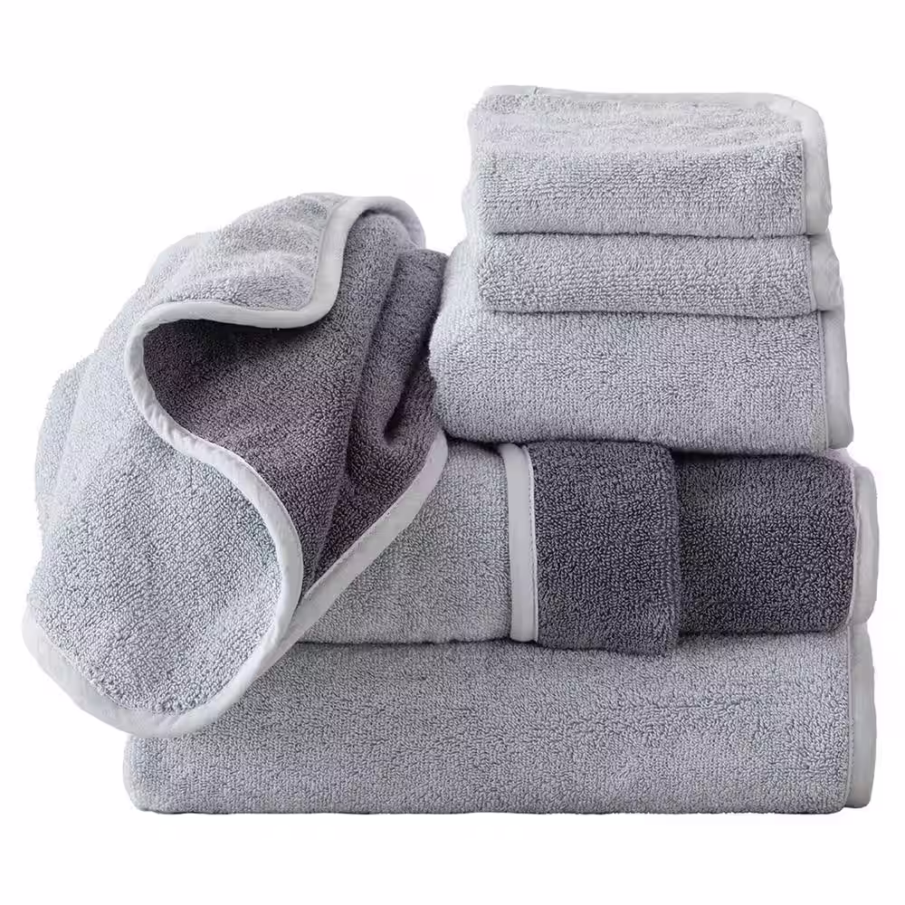 None 6-Piece Gray 100% Cotton Ultra-Absorbent Reversible Bath Towel Set