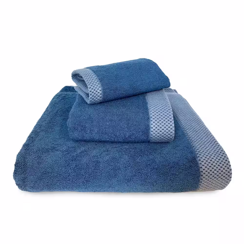 BEDVOYAGE Luxury viscose from Bamboo Cotton Towel Set - Indigo (1-Bath Towel, 1-Hand Towel, 1-Washcloth)