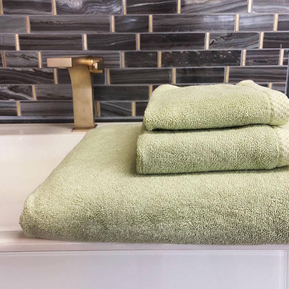 BEDVOYAGE Luxury viscose from Bamboo Cotton Towel Set - Sage (1-Bath Towel, 1-Hand Towel, 1-Washcloth)