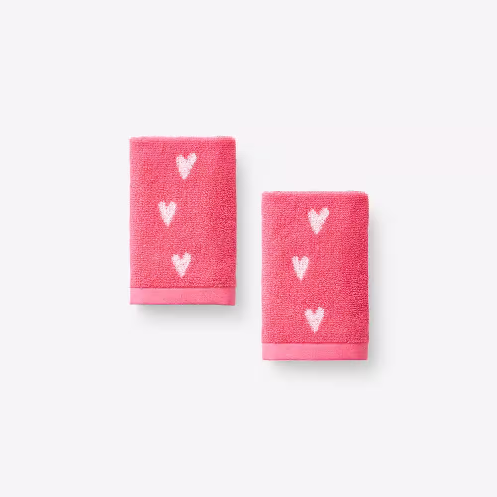 Company Kids by The Company Store Pink Cotton Company Kids Hearts Yarn-Dyed Single Hand Towel