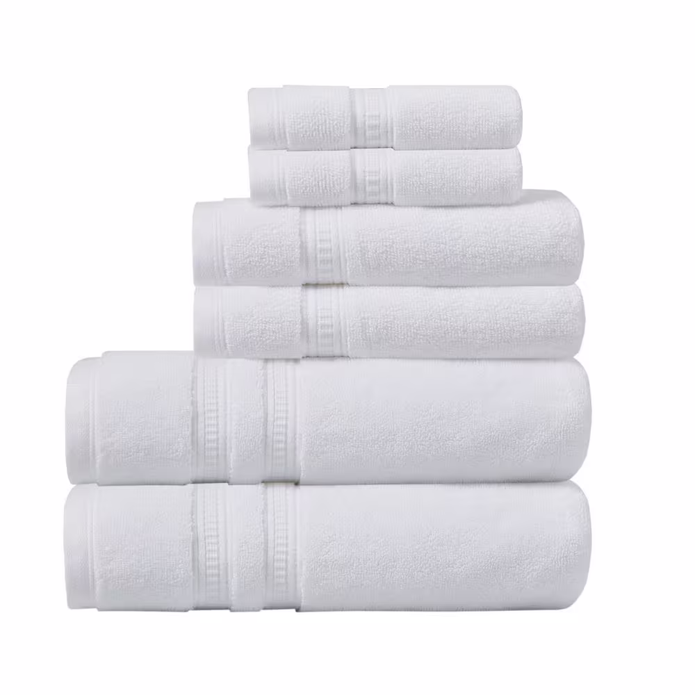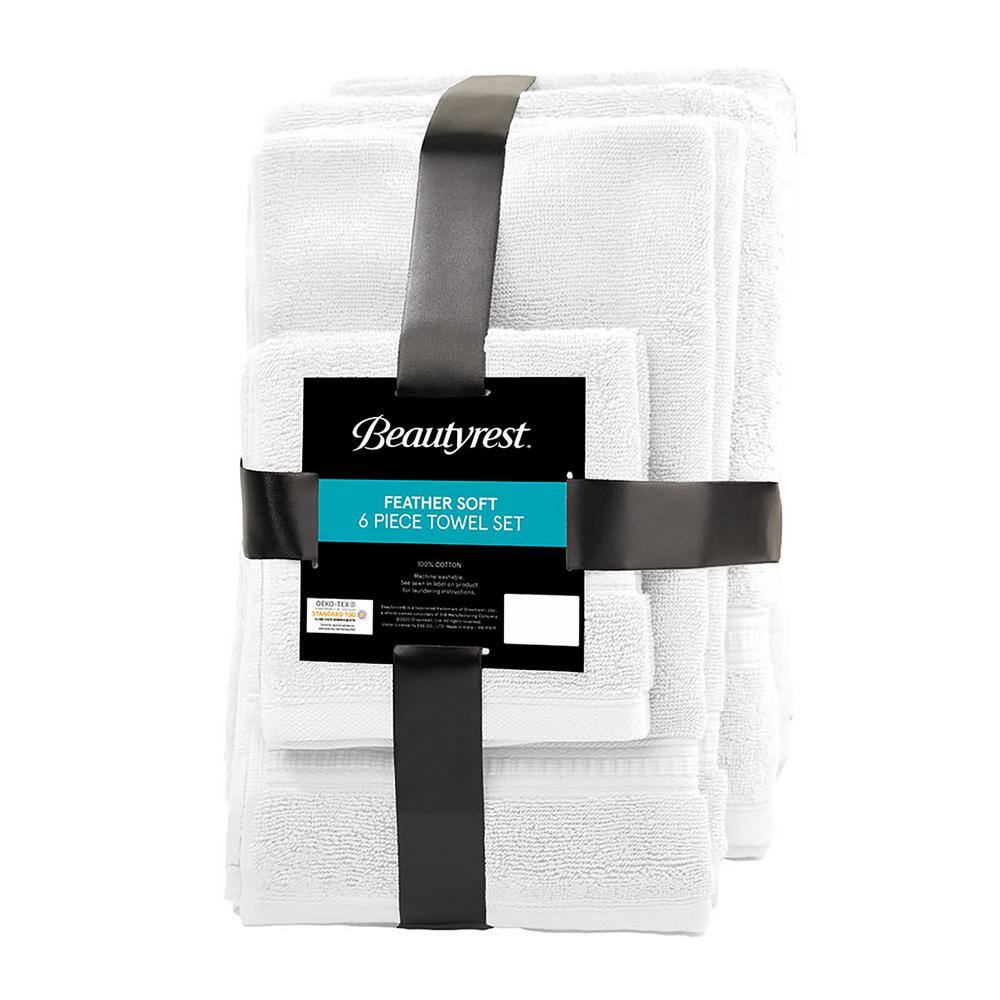 Beautyrest Plume 6-Piece White Cotton Bath Towel Set Feather Touch Antimicrobial 100%