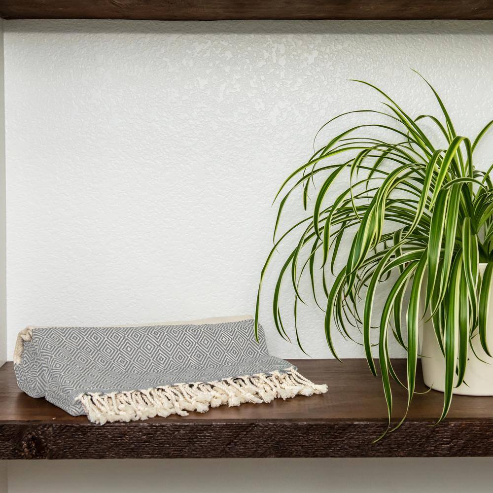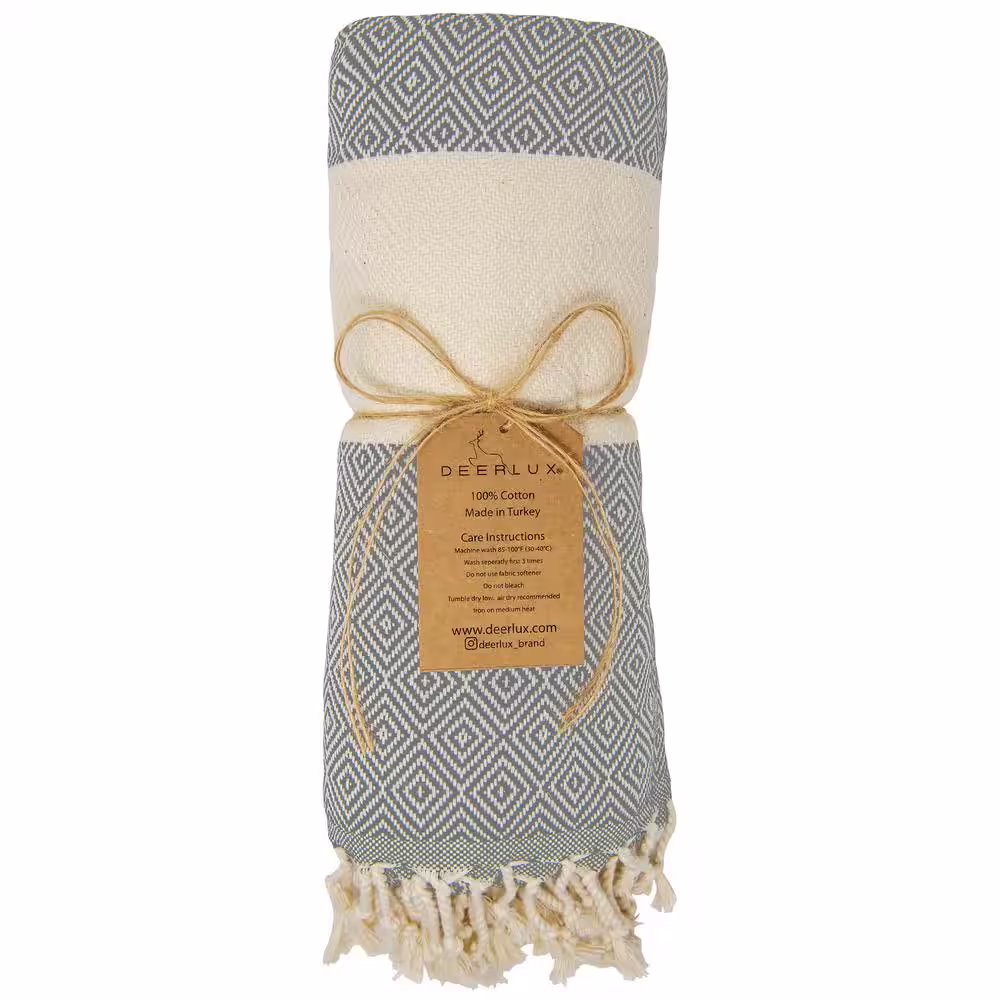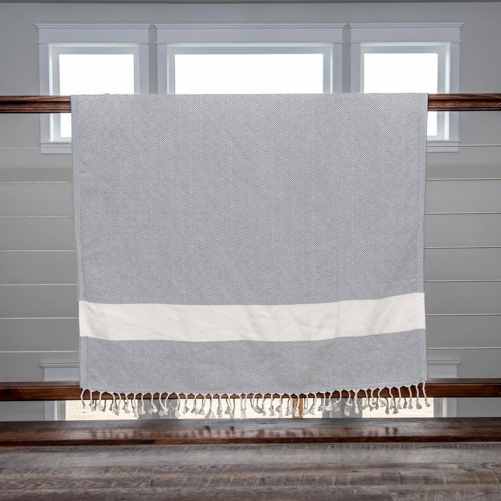 DEERLUX 40 in. x 70 in. Gray Diamond Peshtemal 100% Turkish Cotton Bath Towel