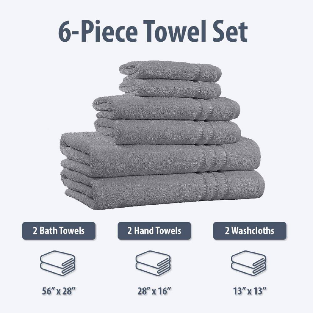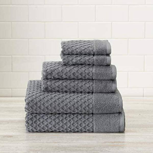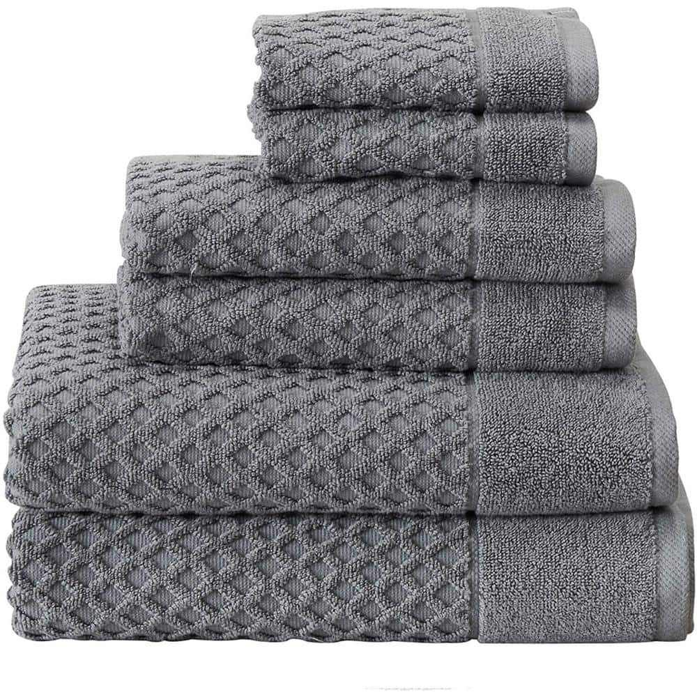THE CLEAN STORE 6 Piece Gray Diamond Bath Towel Set (2 Bath Towels, 2 Hand Towels and 2 Washcloths)