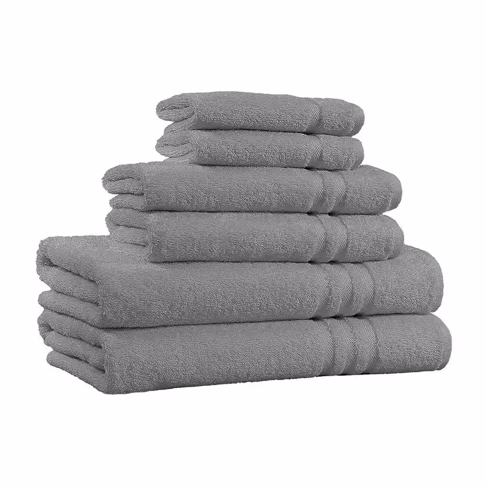 None 6-Piece Silver Grey Extra Soft 100% Egyptian Cotton Bath Towel Set