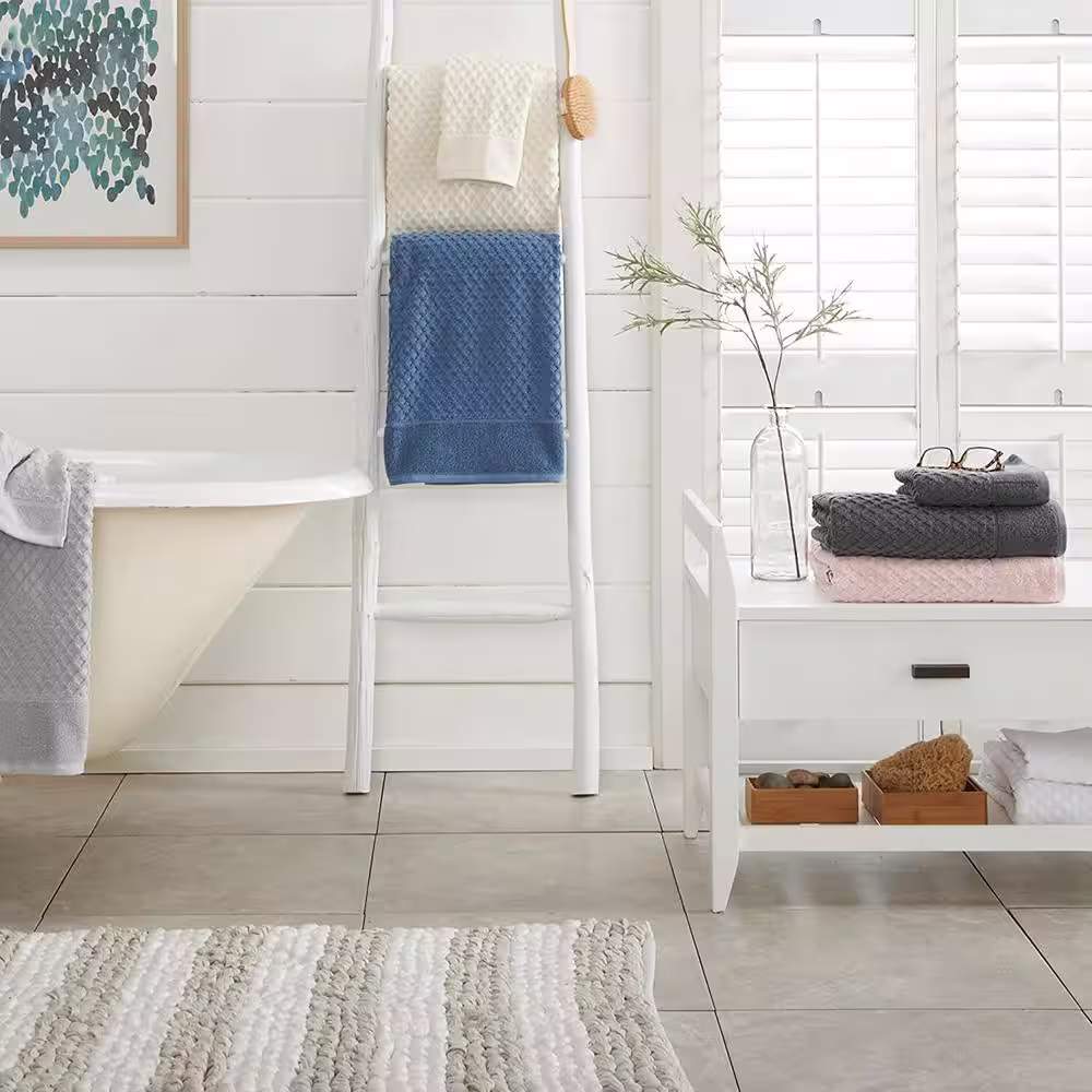 None 6-Piece Pink Diamond Cotton Bath Towel Set (2-Bath Towels 2-Hand Towels and 2-Washcloths)