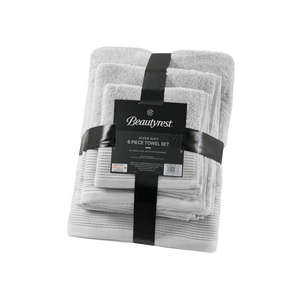 Beautyrest Nuage Grey Cotton Tencel Blend Antimicrobial 6 Piece Towel Set