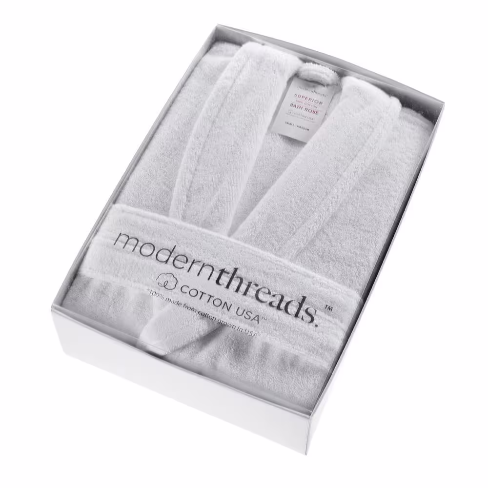 MODERN THREADS 100 % USA Cotton Classic Bathrobe with Shawl Collar White Small/Medium