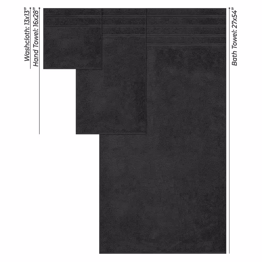 American Soft Linen Bath Towel Set 100% Turkish Cotton 3 Piece Towels for Bathroom- Coal Black