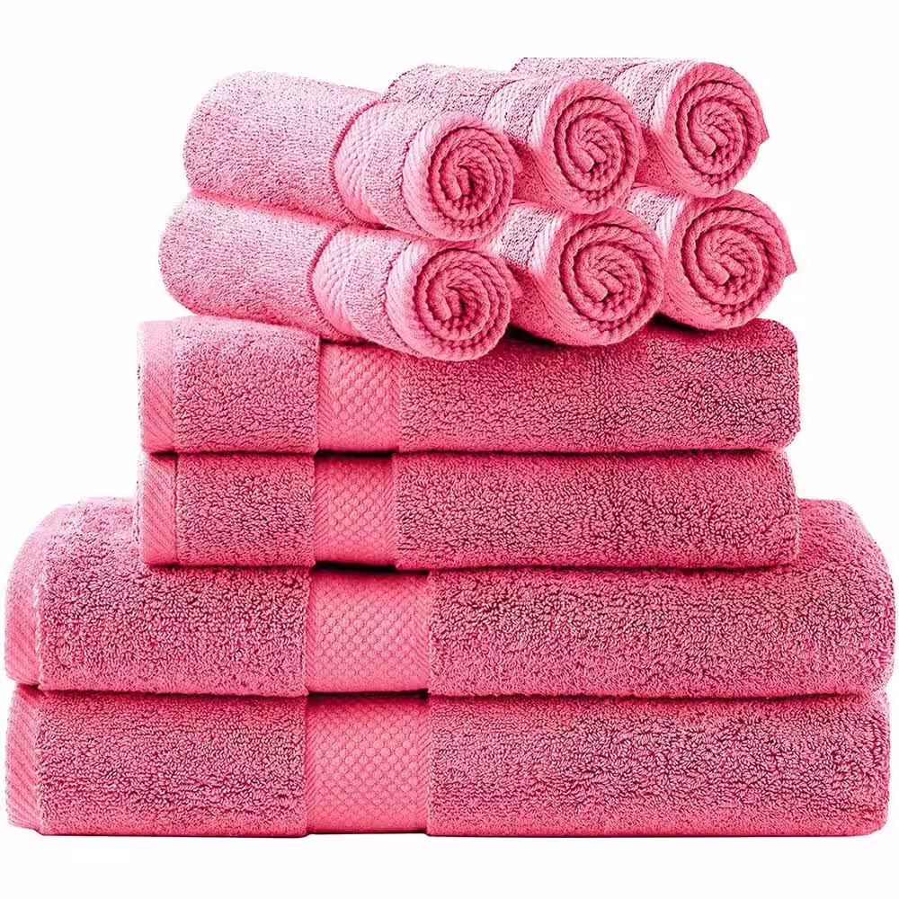 The Clean Store 10 Piece Pink Cotton Bath Towel Set (2 Bath Towels, 2 Hand Towels and 6 Washcloths)