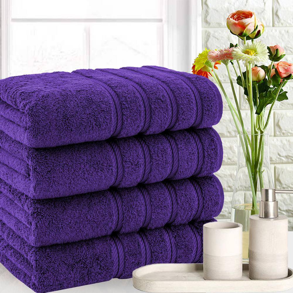 None Bath Towel Set, 4-Piece 100% Turkish Cotton Bath Towels, 27 x 54 in. Super Soft Towels for Bathroom, Purple