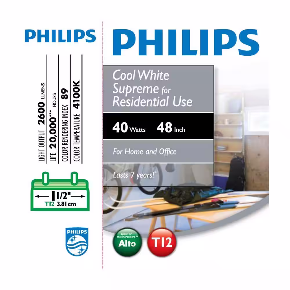 Philips 40-Watt 4 ft. Linear T12 ALTO Fluorescent Tube Light Bulb Cool White (4100K) (2-Pack)