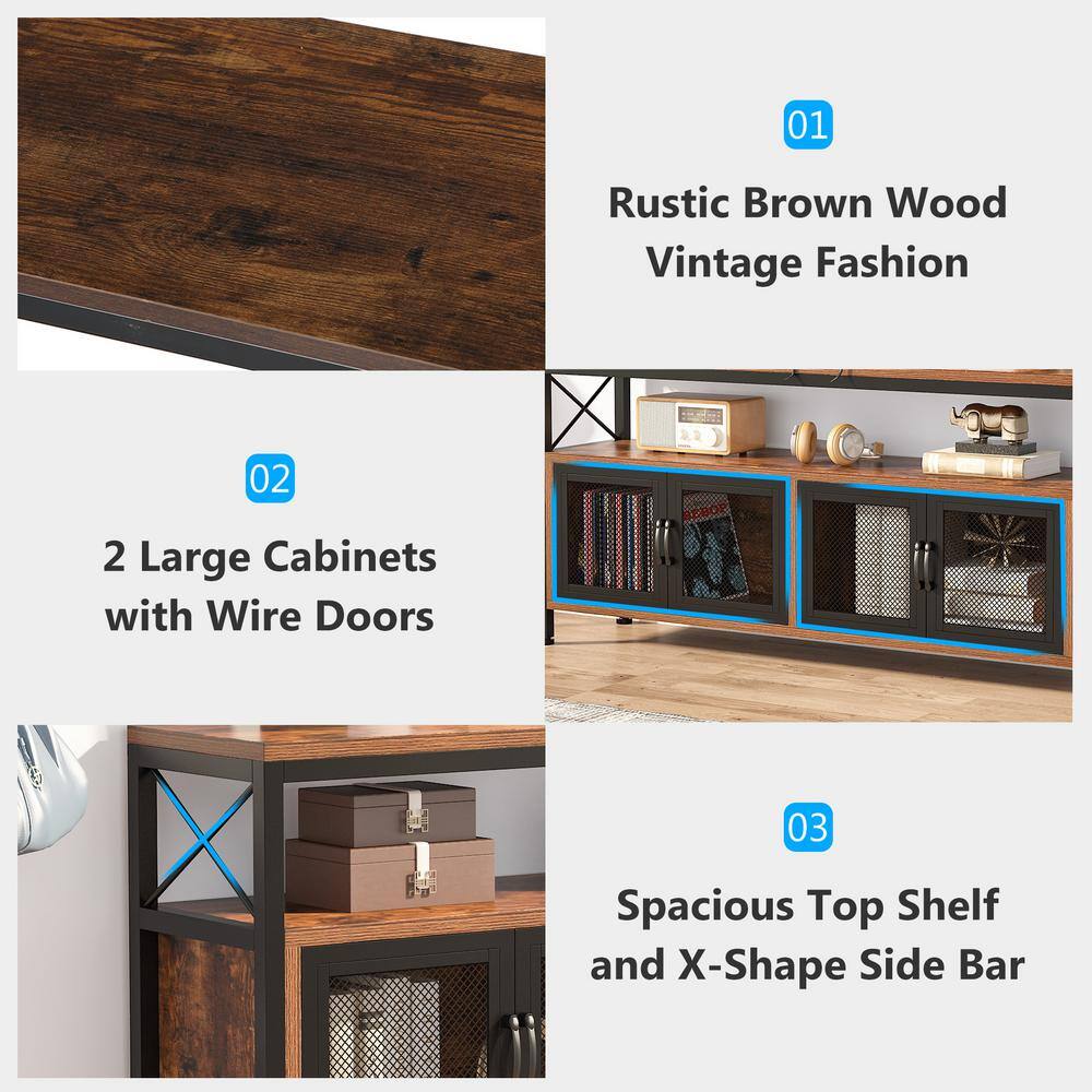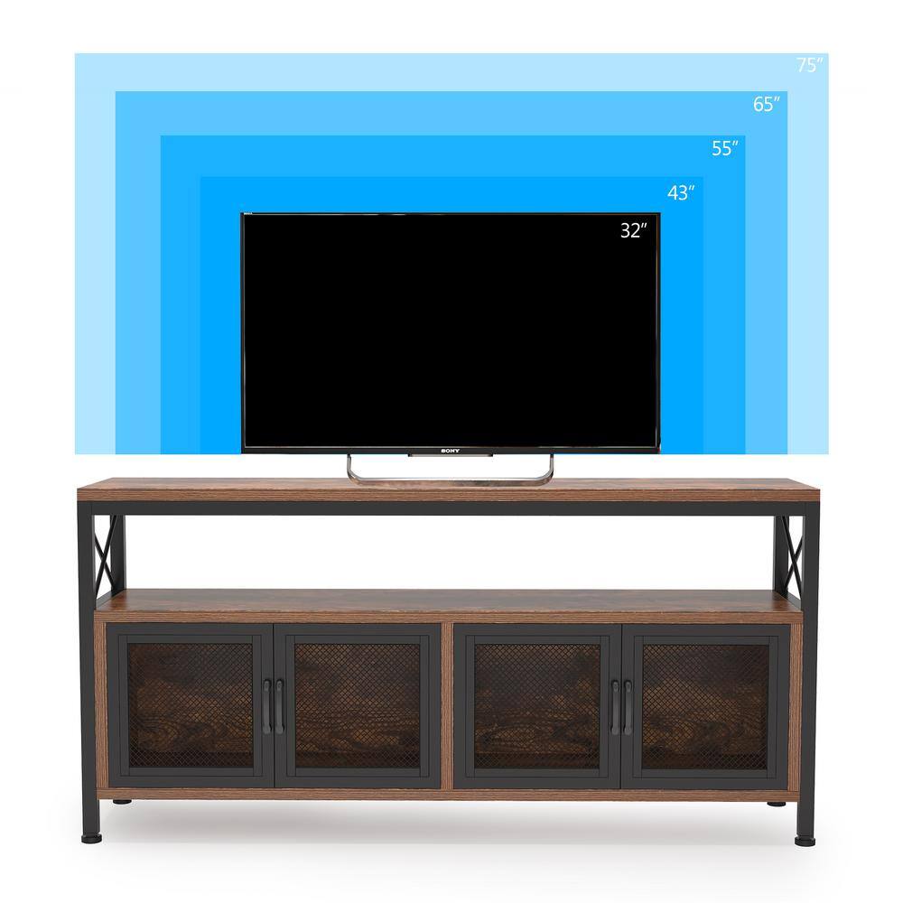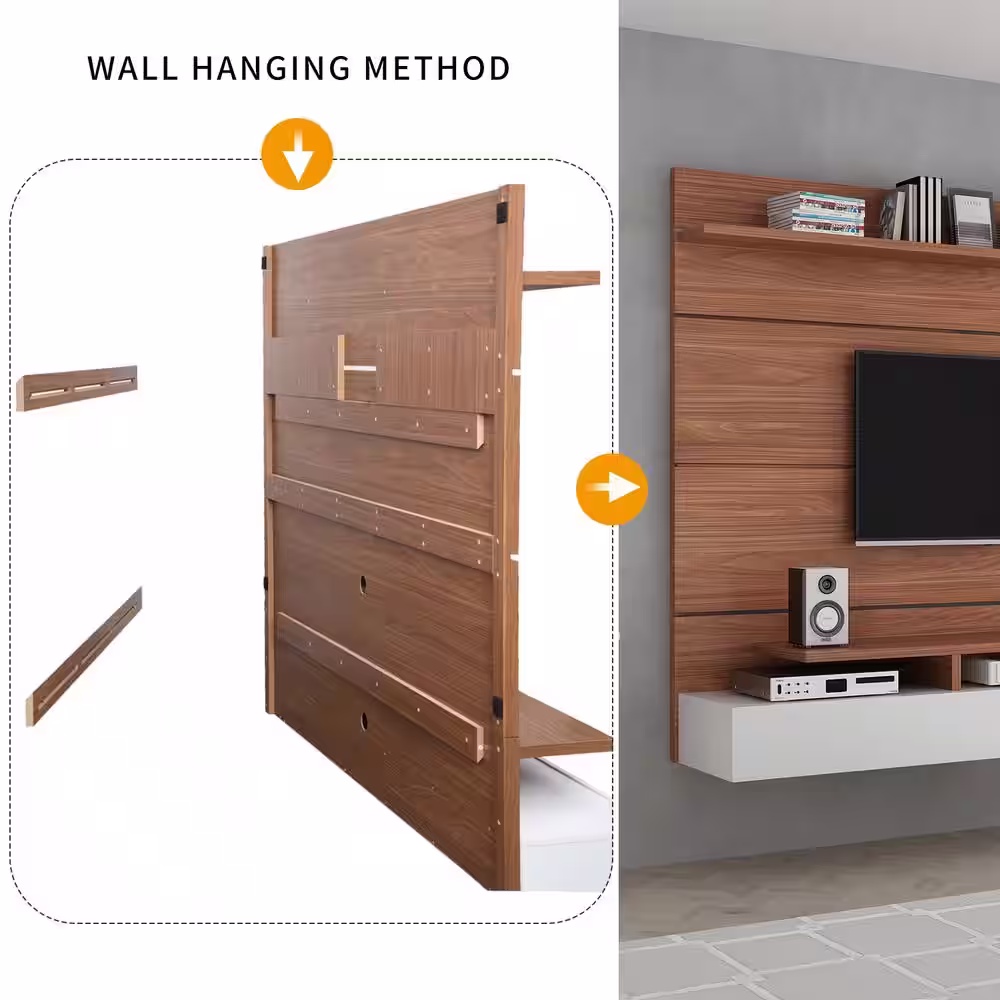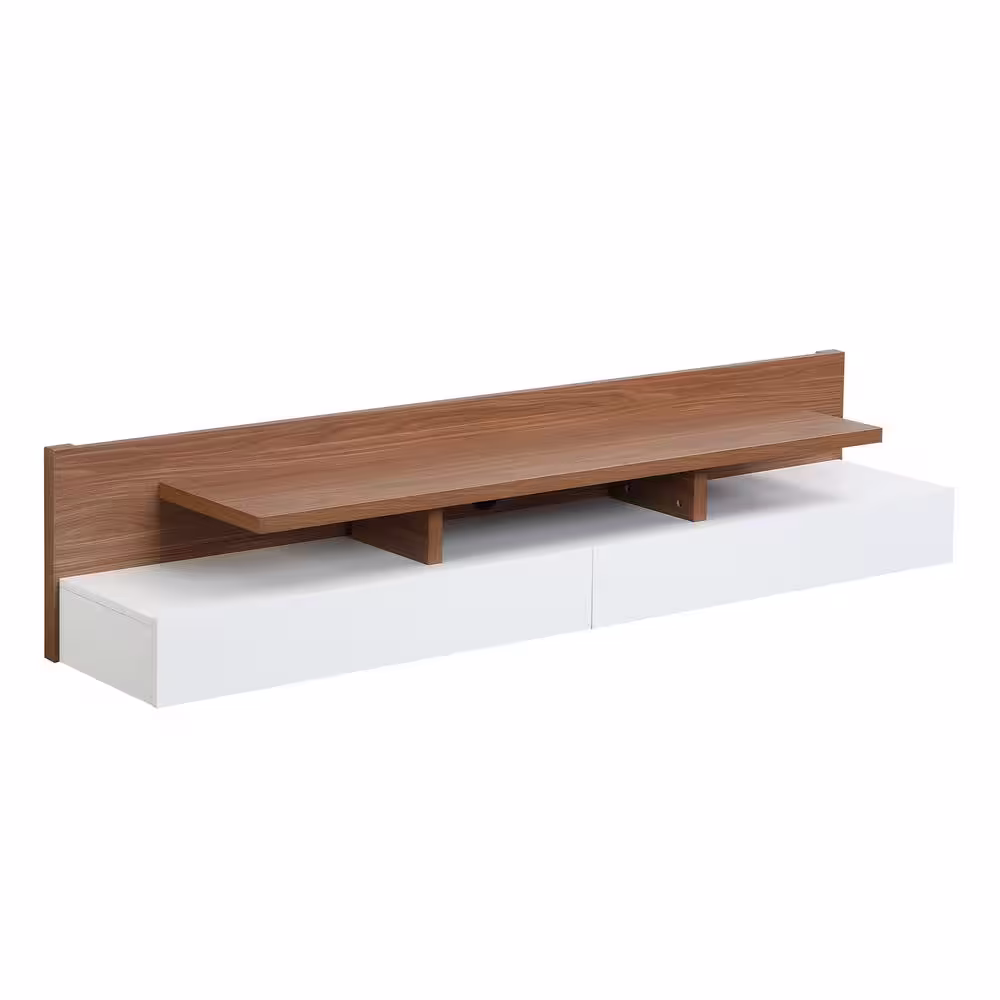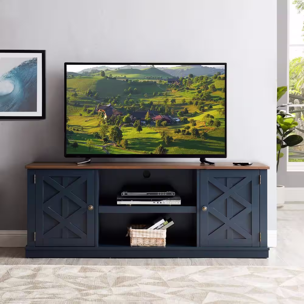 None 64 in. Navy with Walnut Color Desktop TV Stand for TVs up to 70 in.