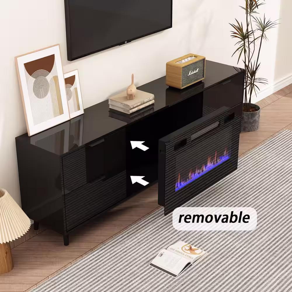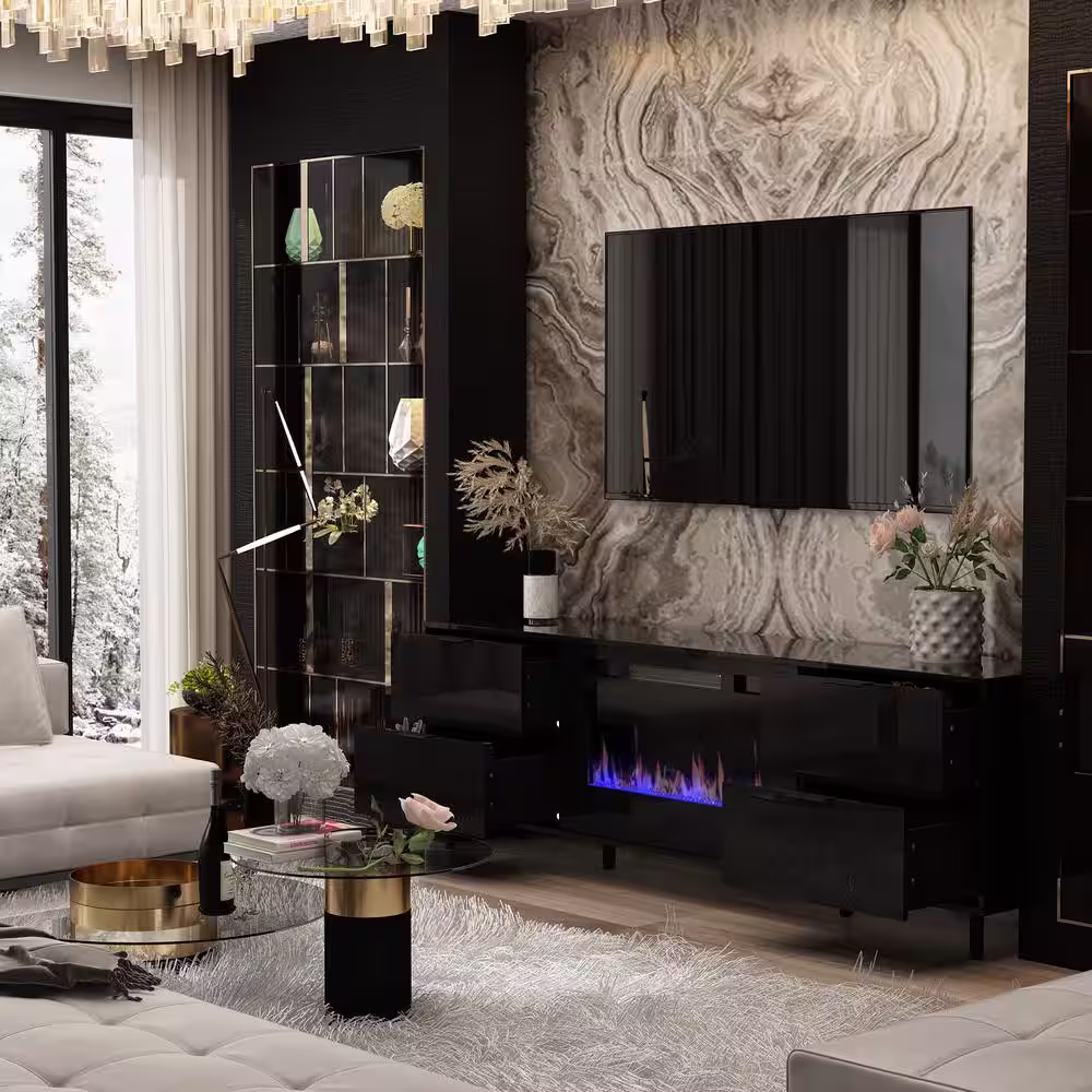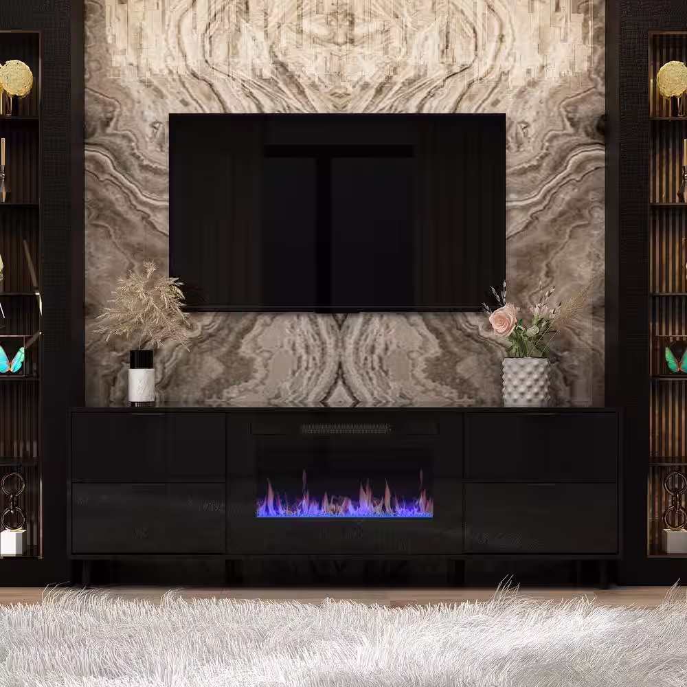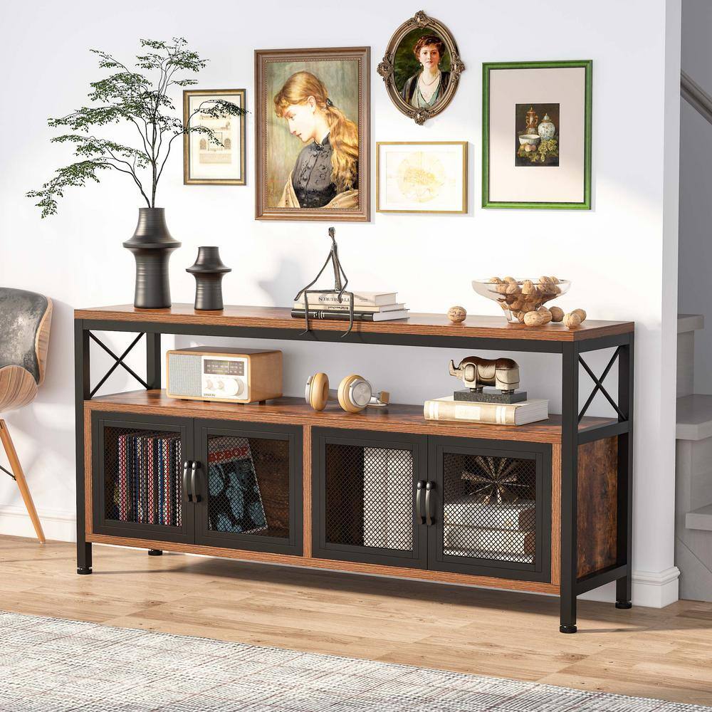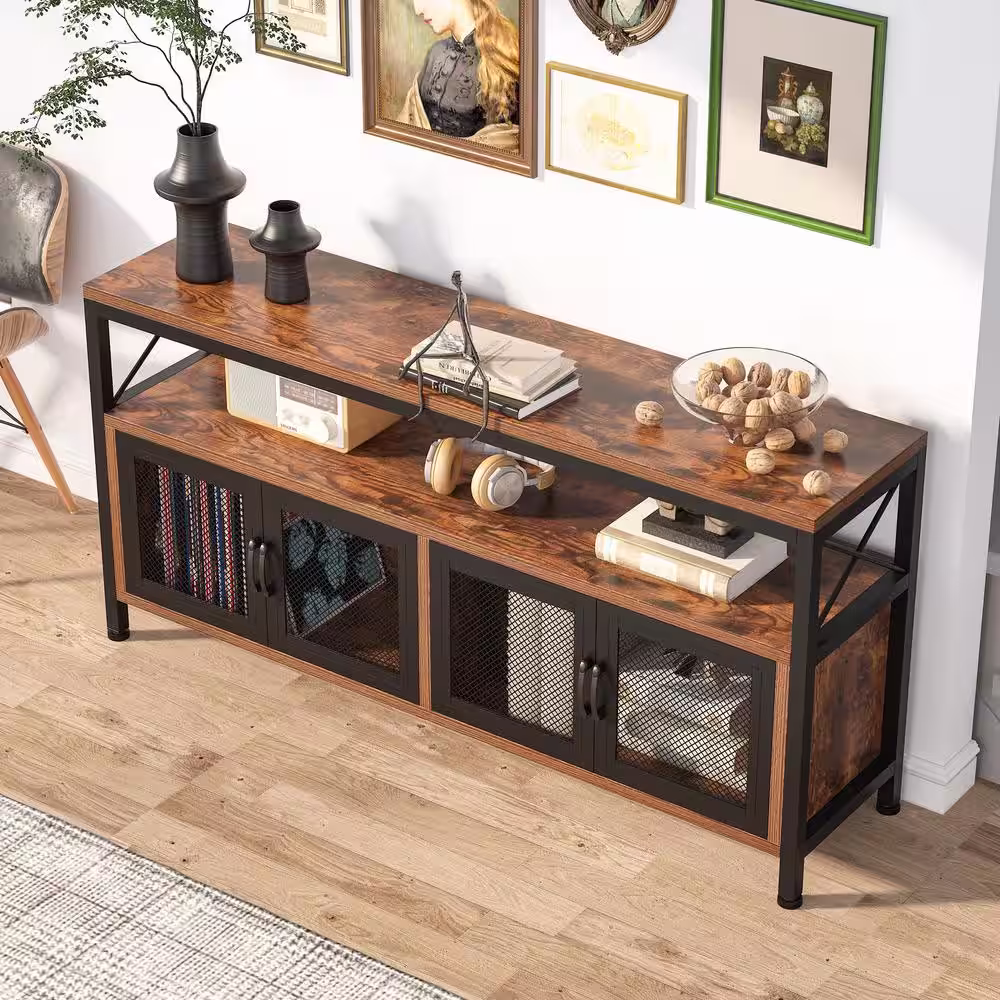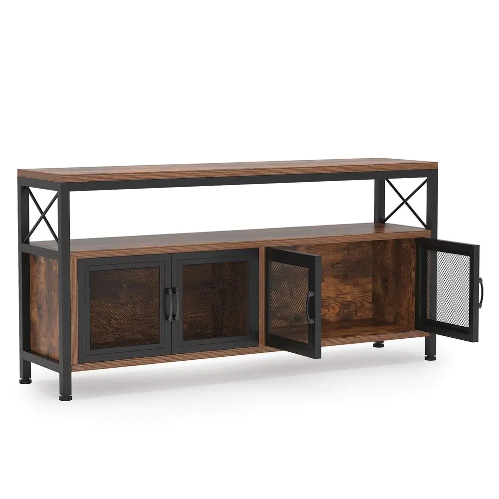 None 64 in. Navy with Walnut Color Desktop TV Stand for TVs up to 70 in.