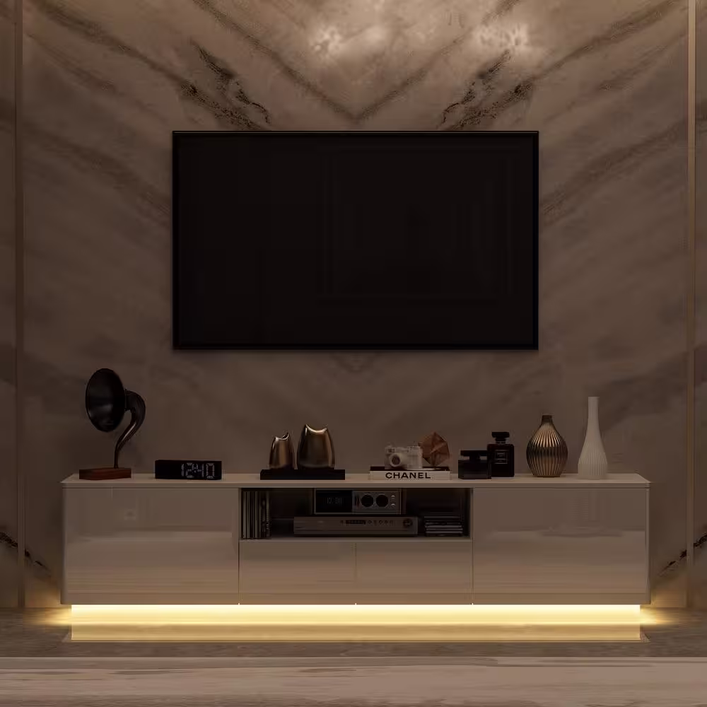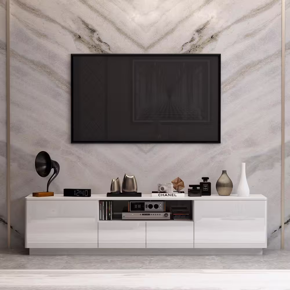 FUFU&GAGA 70.8 in. W x 14.5 in. D x17.3 in. H, White Smooth Finished Wooden Table up to 75 in. with 4-Drawers and 1 Shelf