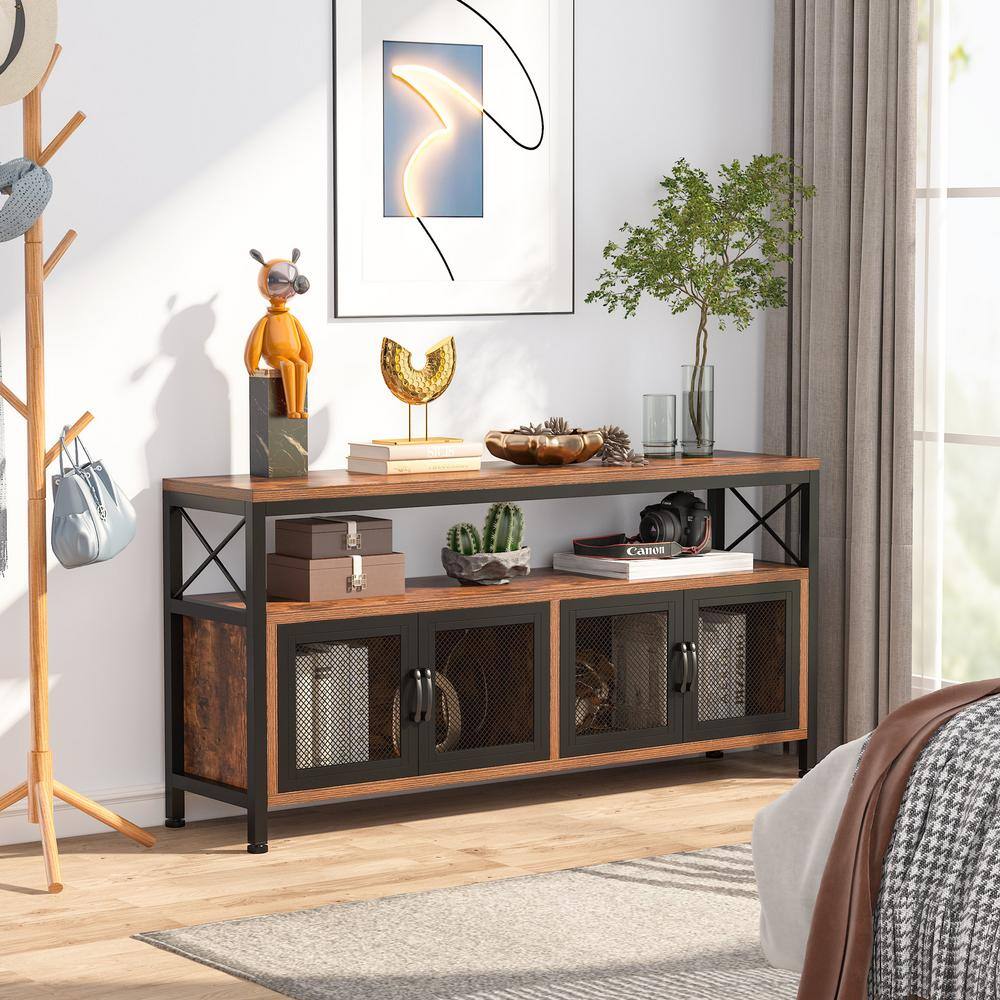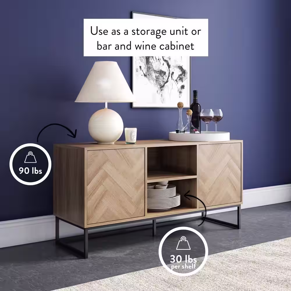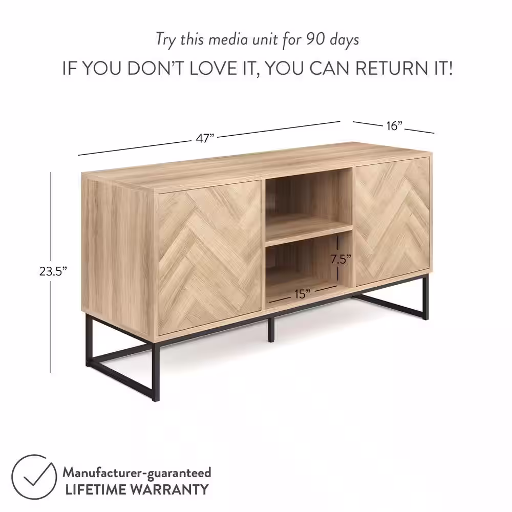Nathan James Dylan 47 in. Oak and Black Wood TV Stand Fits TVs Up to 55 in. with Storage Doors