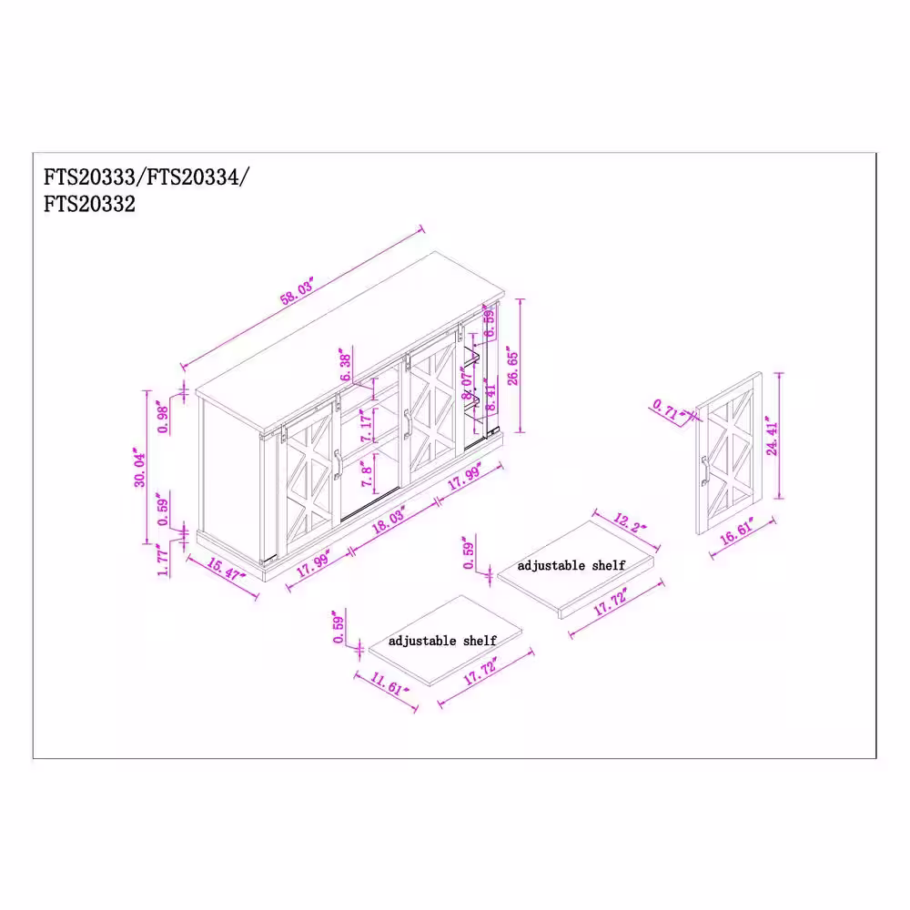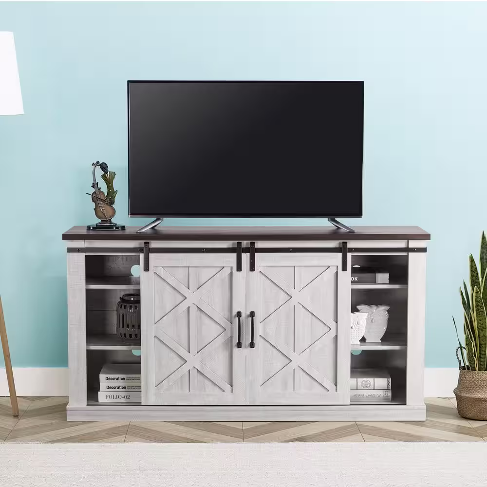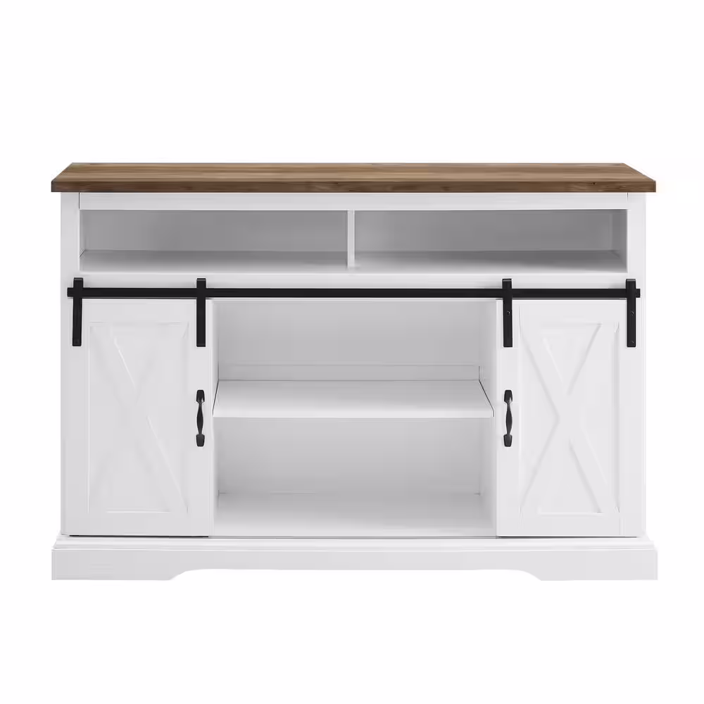 Walker Edison Furniture Company 52 in. White Reclaimed Barnwood TV Stand with storage Doors (Max tv size 58 in.)