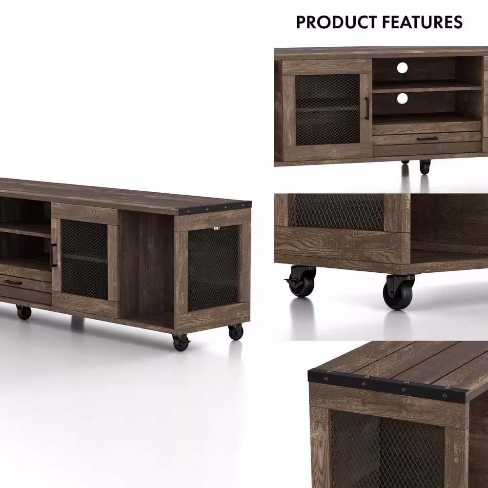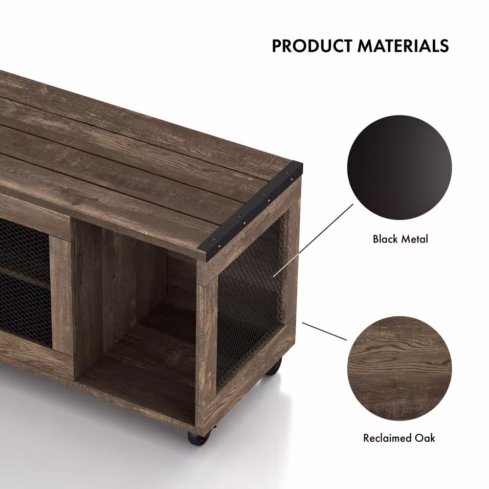 Furniture of America Coopern 71 in. Reclaimed Oak TV Stand Fits TVs Up to 80 in. with Storage