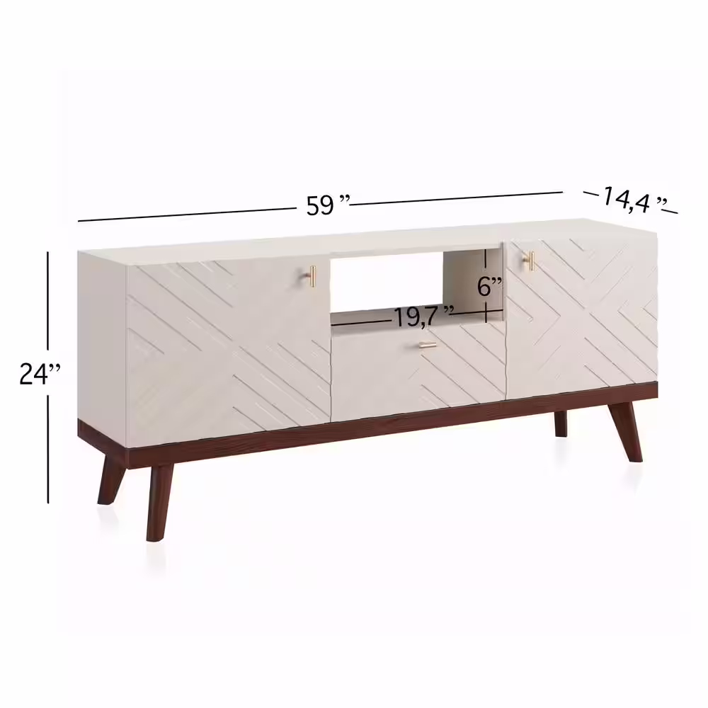 None Alba 59 in. Beige TV Stand with Drawer Fits TV's up to 65 in. with Cable Management and Wood Legs