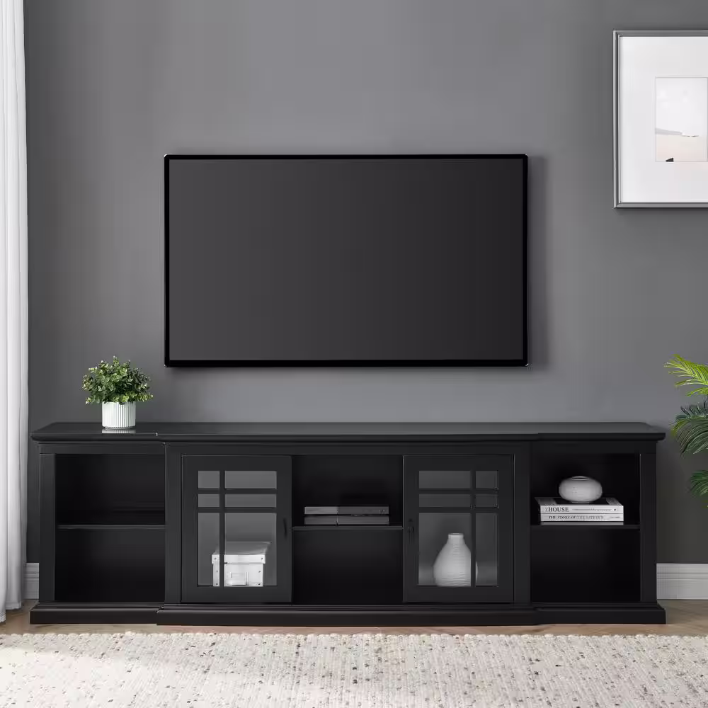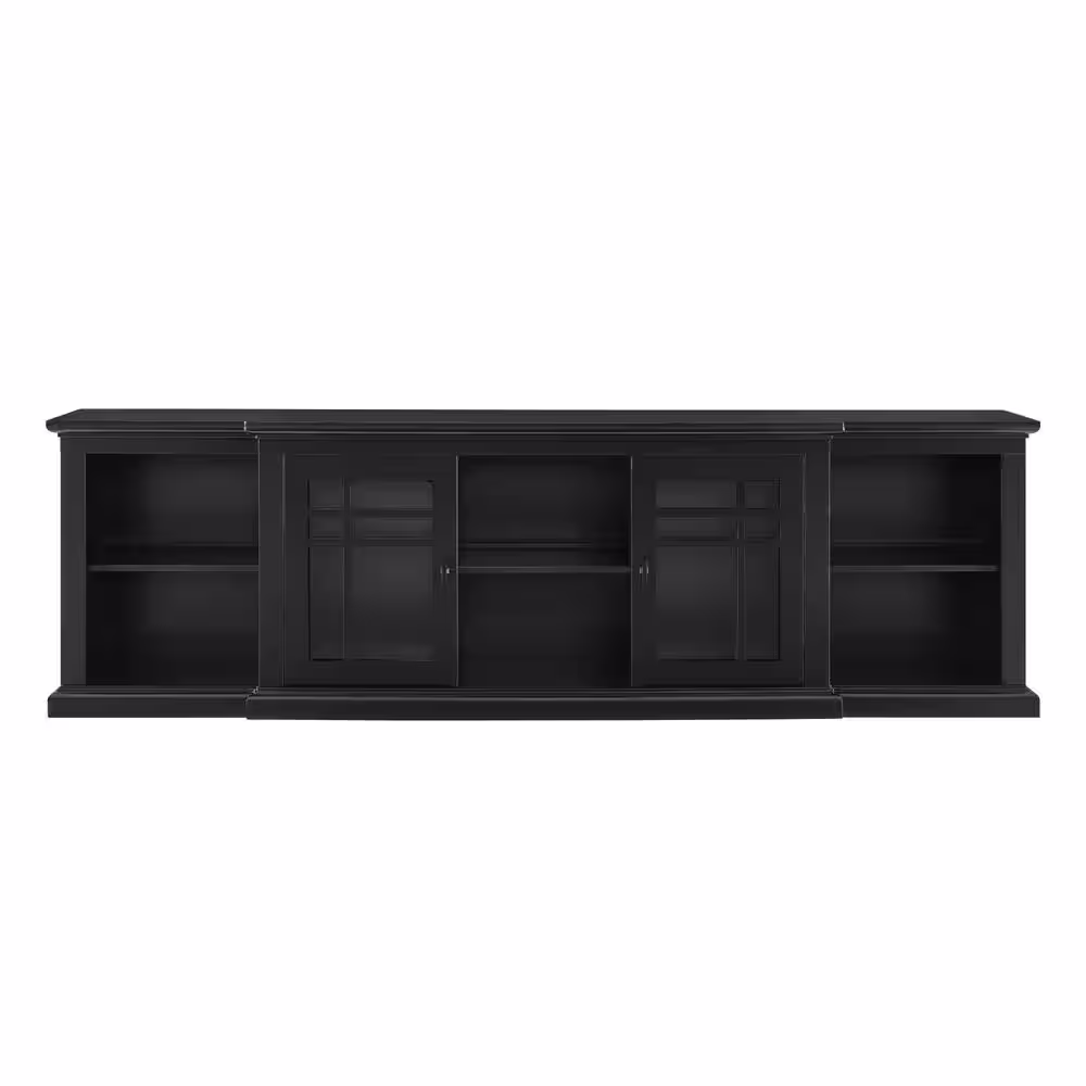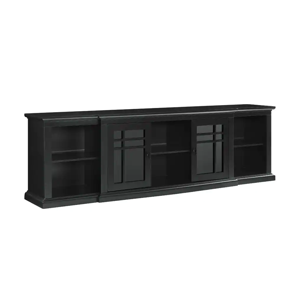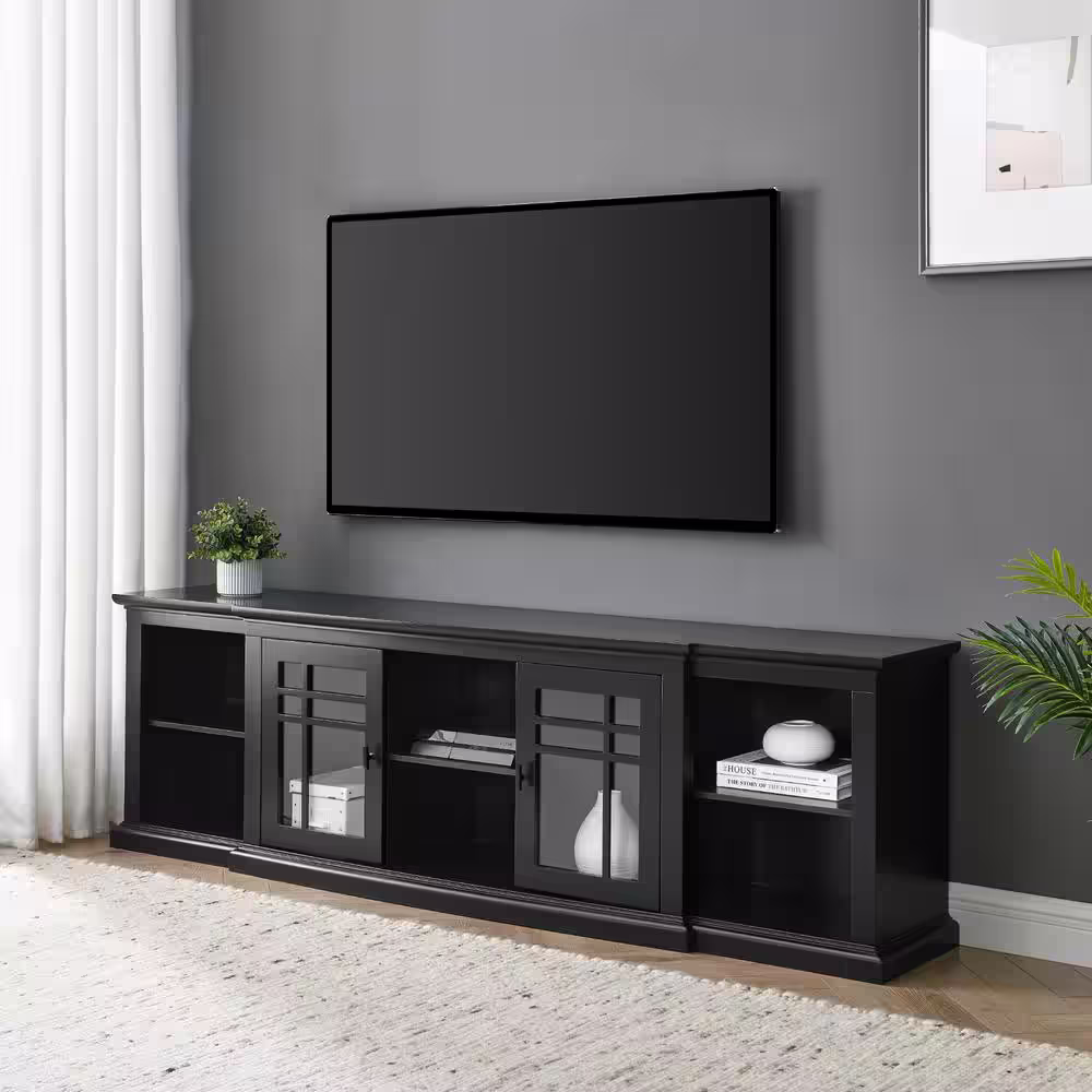 Welwick Designs 80 in. Black Transitional Wood and Glass-Door TV Stand with Cable Management (Max tv size 88 in.)