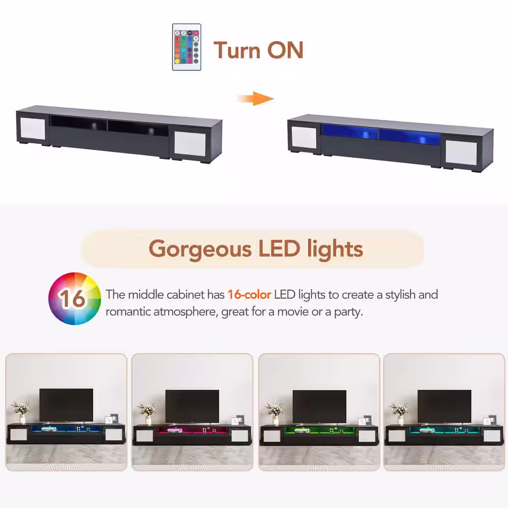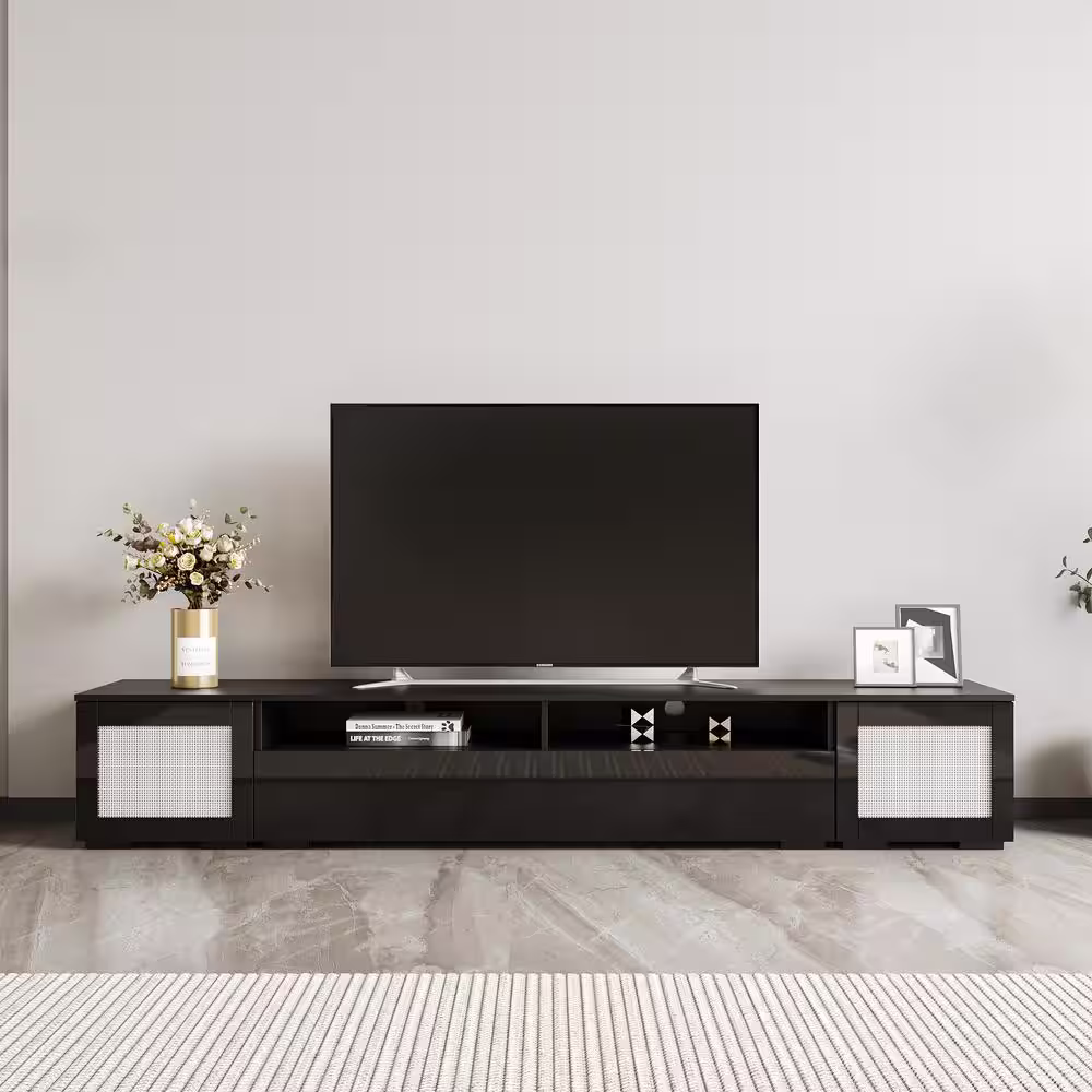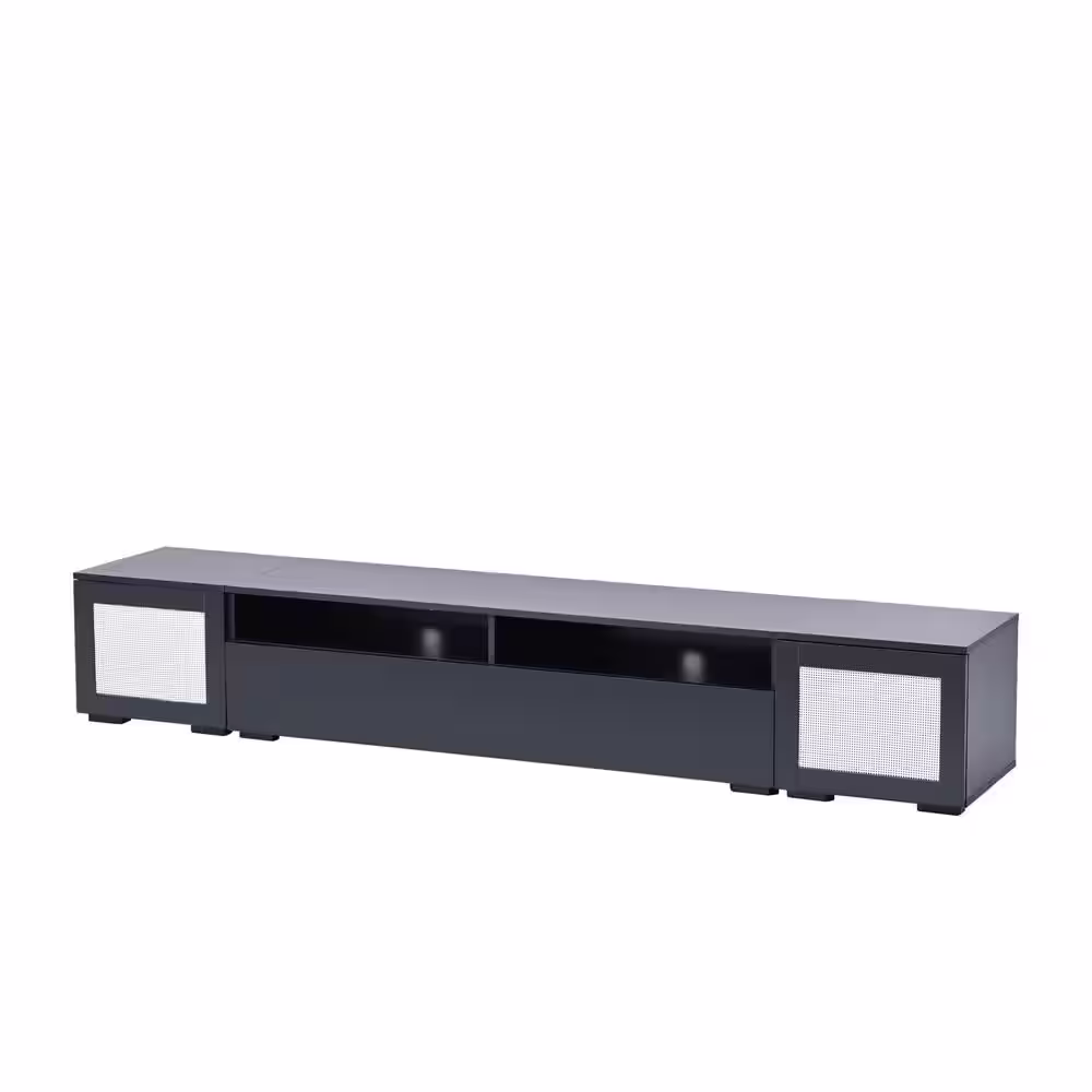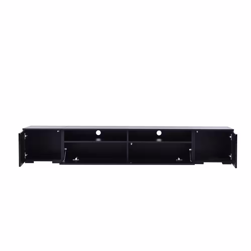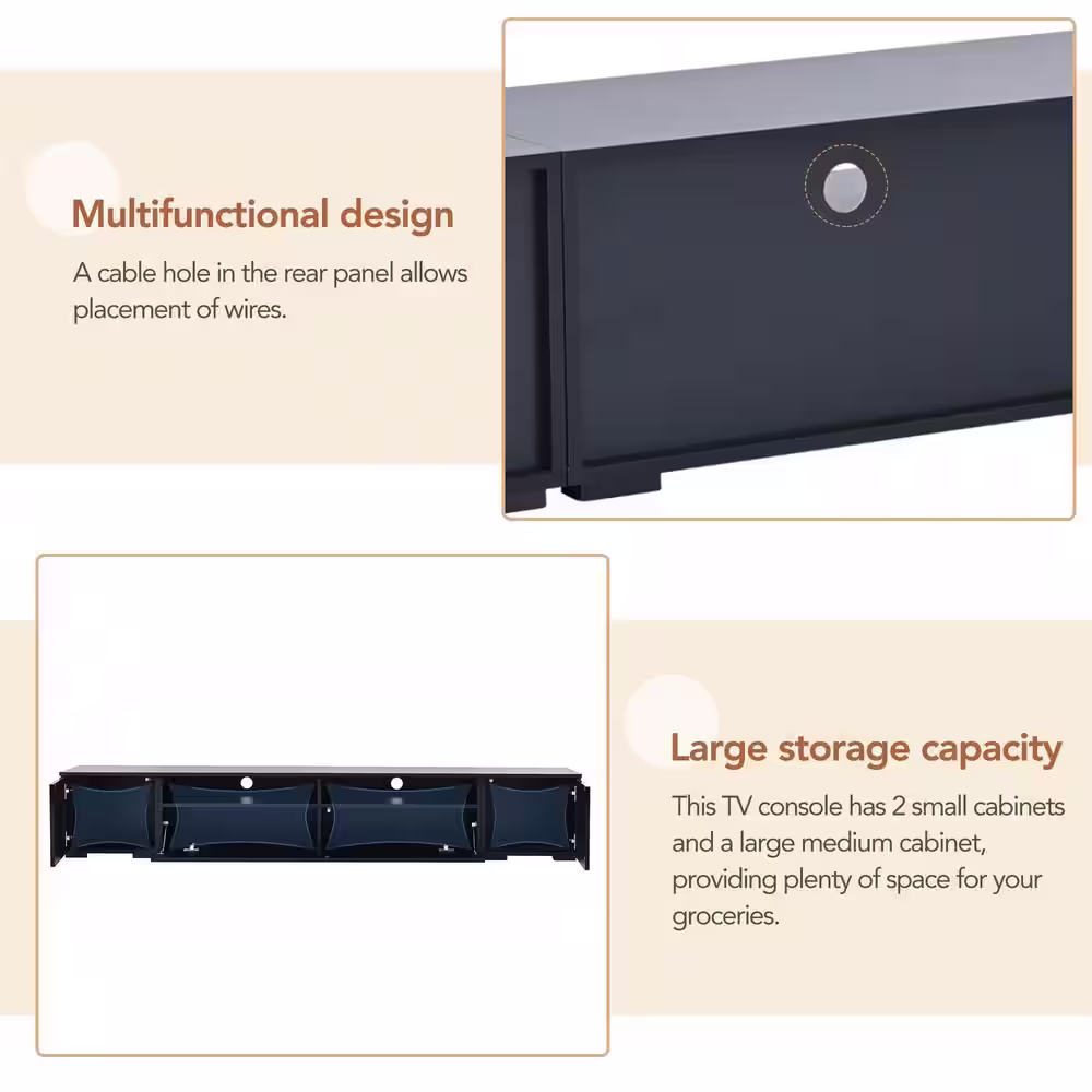Welwick Designs 80 in. Black Transitional Wood and Glass-Door TV Stand with Cable Management (Max tv size 88 in.)