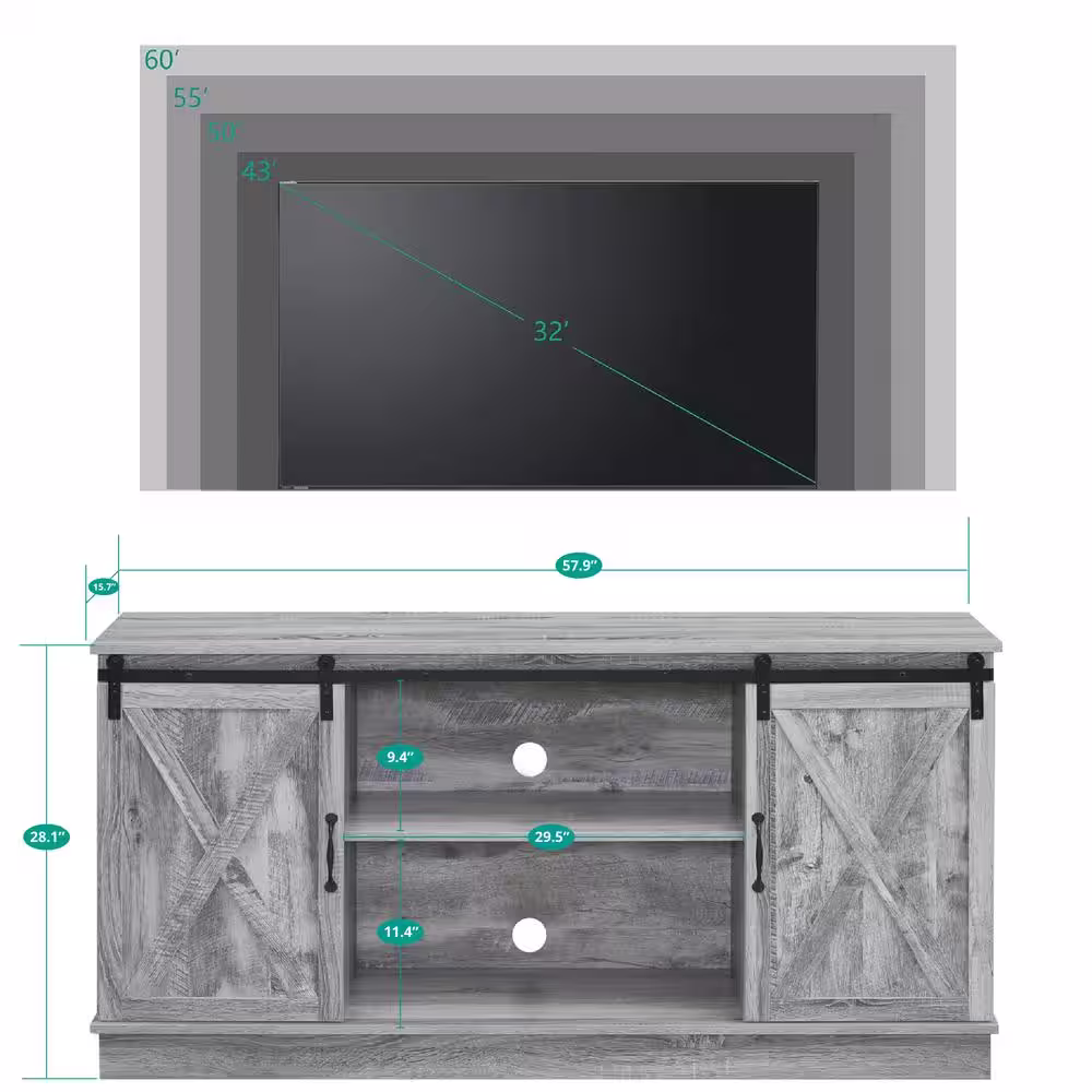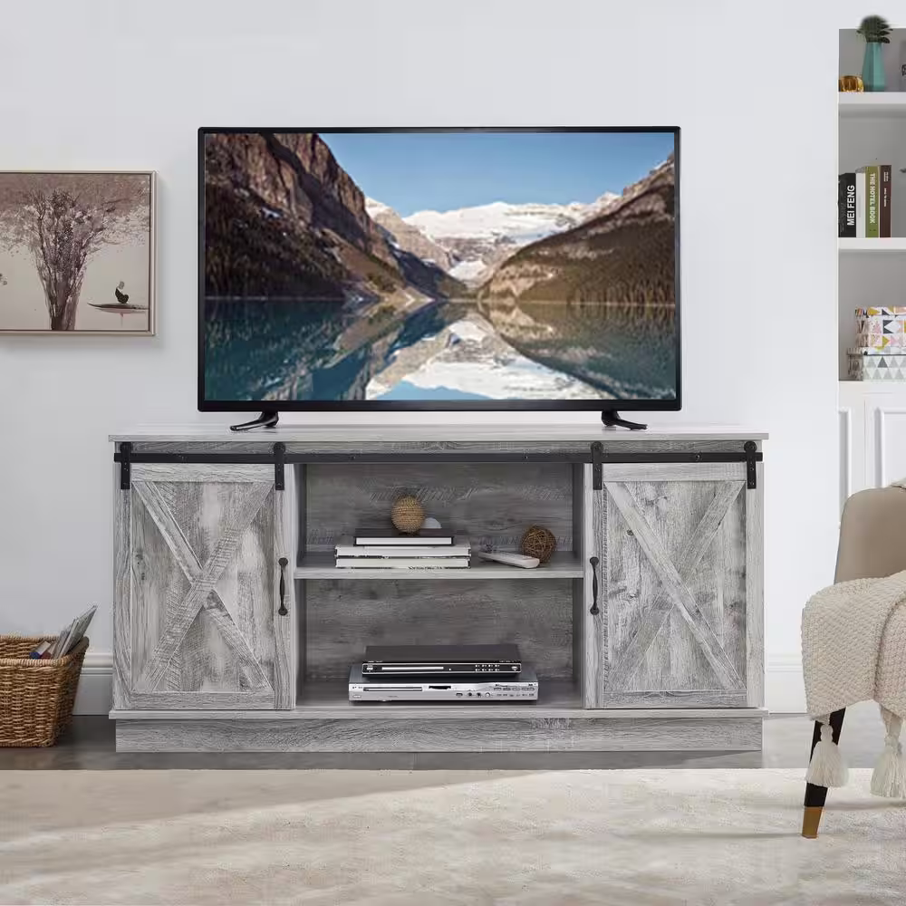 TECHNI MOBILI 57.25 in. Gray Wood TV Stand Fits TVs Up to 65 in. with Storage Doors