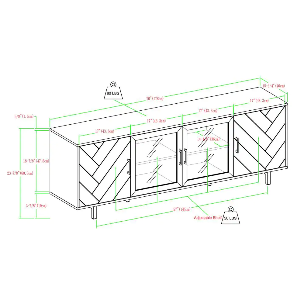 Welwick Designs 70 in. Dark Walnut Wood and Glass Modern Herringbone TV Stand with 4-Drawers (Max tv size 80 in.)