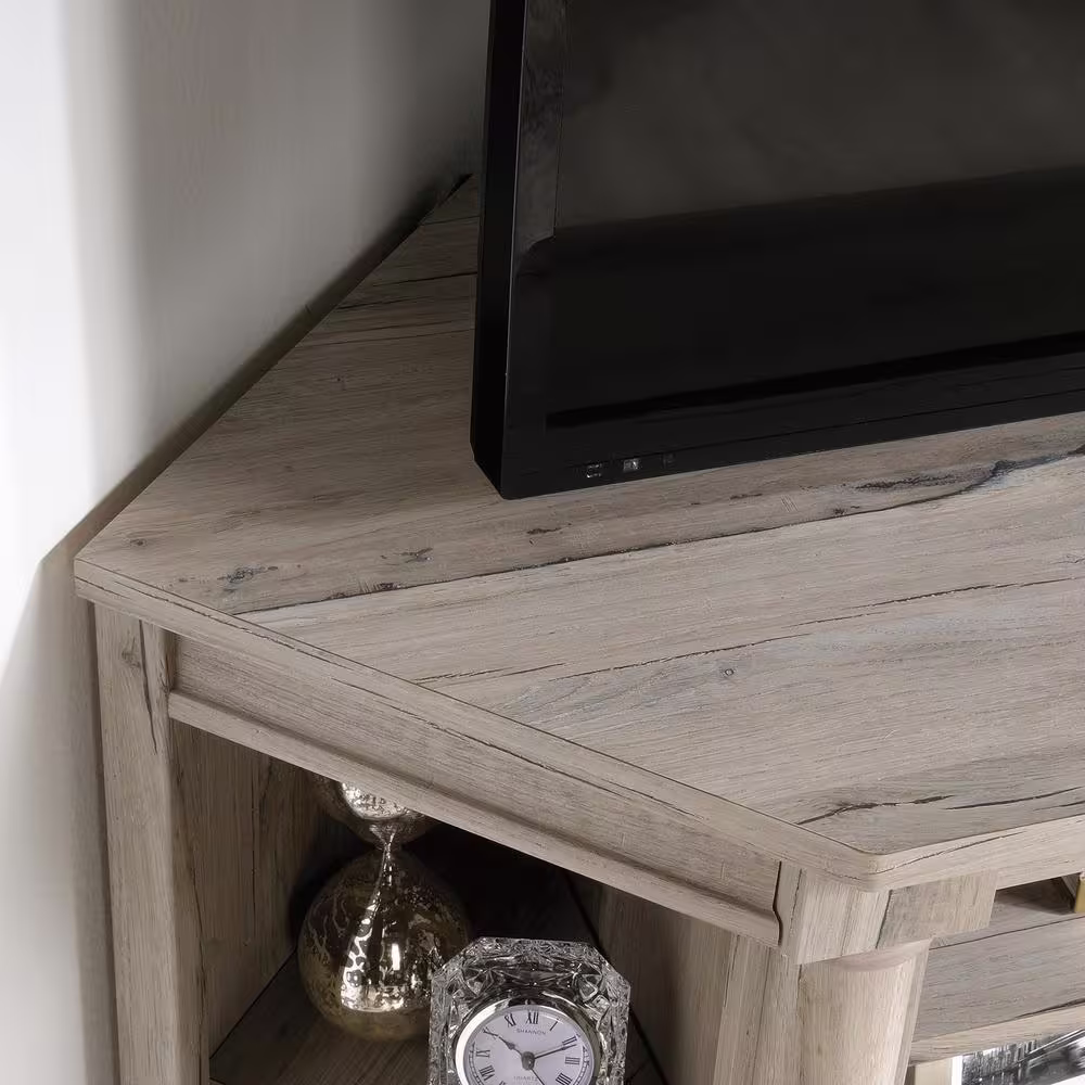 SAUDER Palladia 61 in. Oak Engineered Wood Corner TV Stand with 2 Drawer Fits TVs Up to 60 in. with Adjustable Shelves