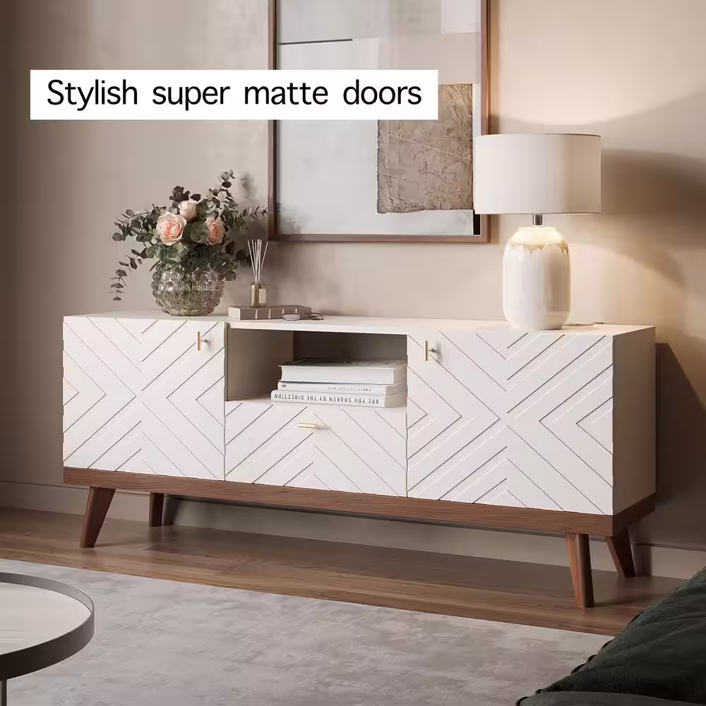 None 70 in. Farmhouse Style Off White TV Stand Fits TVs Up To 78 in. with Open Shelves
