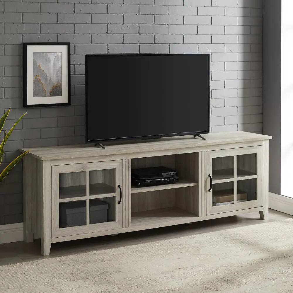 Walker Edison Furniture Company 70 in. Birch Composite TV Stand Fits TVs Up to 75 in. with Storage Doors