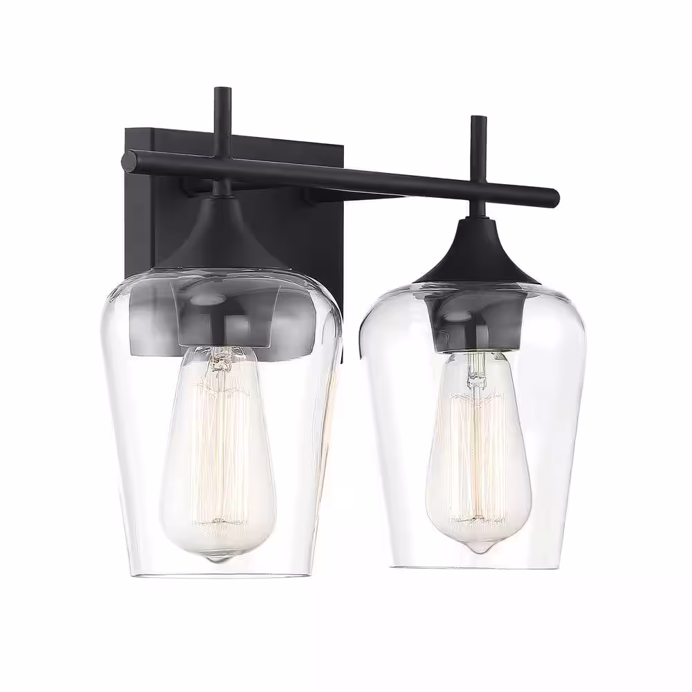 Savoy House Octave 13.75 in. W x 9 in. H 2-Light Black Bathroom Vanity Light with Clear Glass Shades
