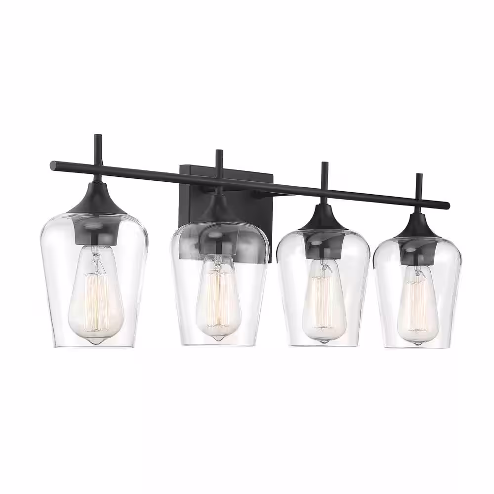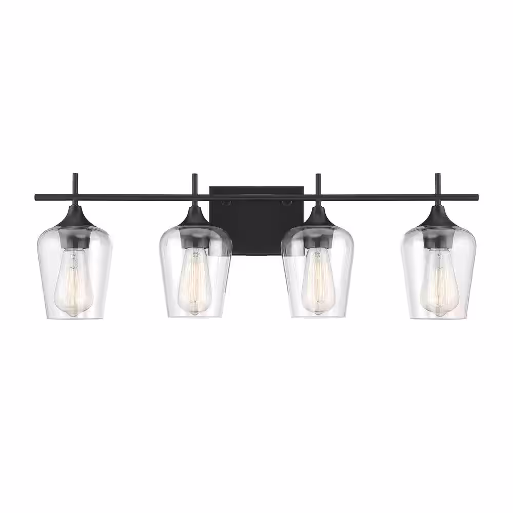 Savoy House Octave 28.75 in. W x 9 in. H 4-Light Black Bathroom Vanity Light with Clear Glass Shades