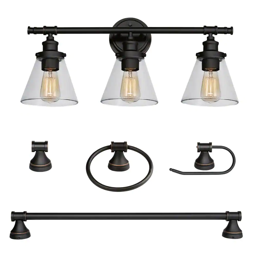 Globe Electric Parker 3-Light Oil Rubbed Bronze 5-Piece All-In-One Bath Light Set
