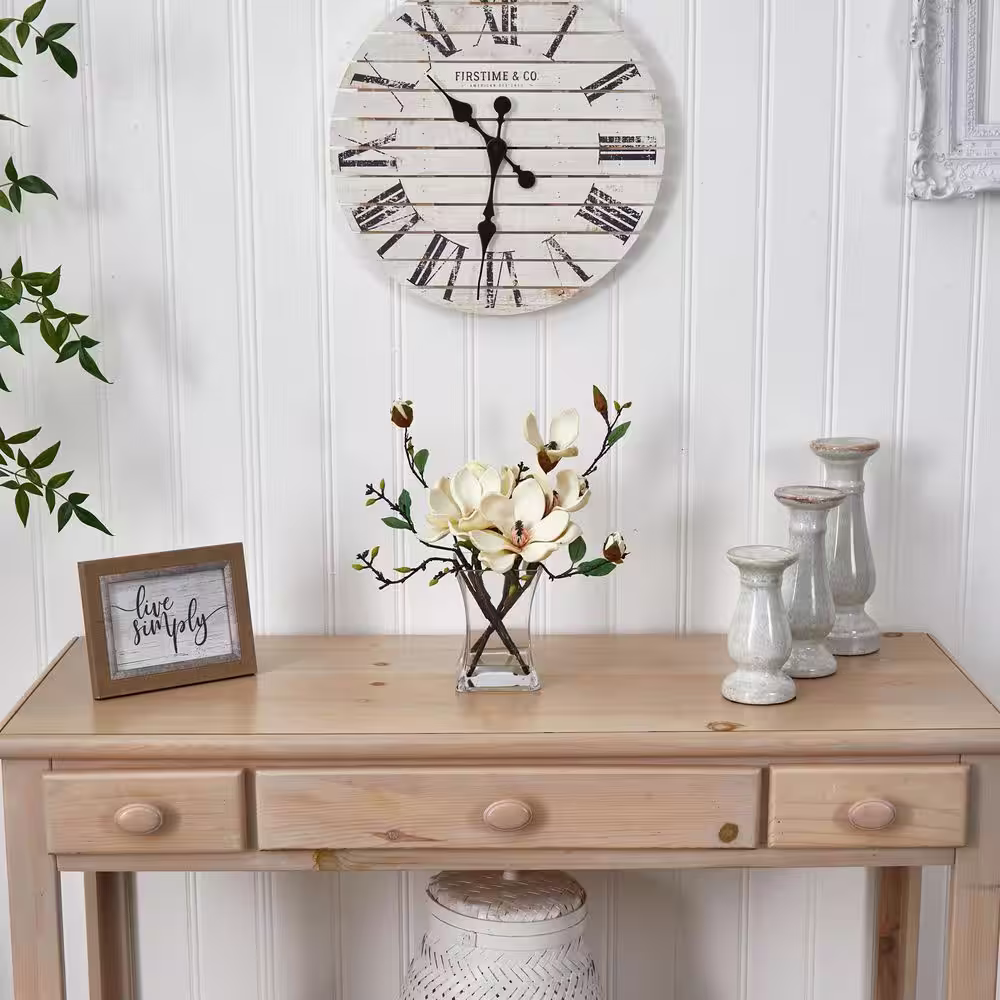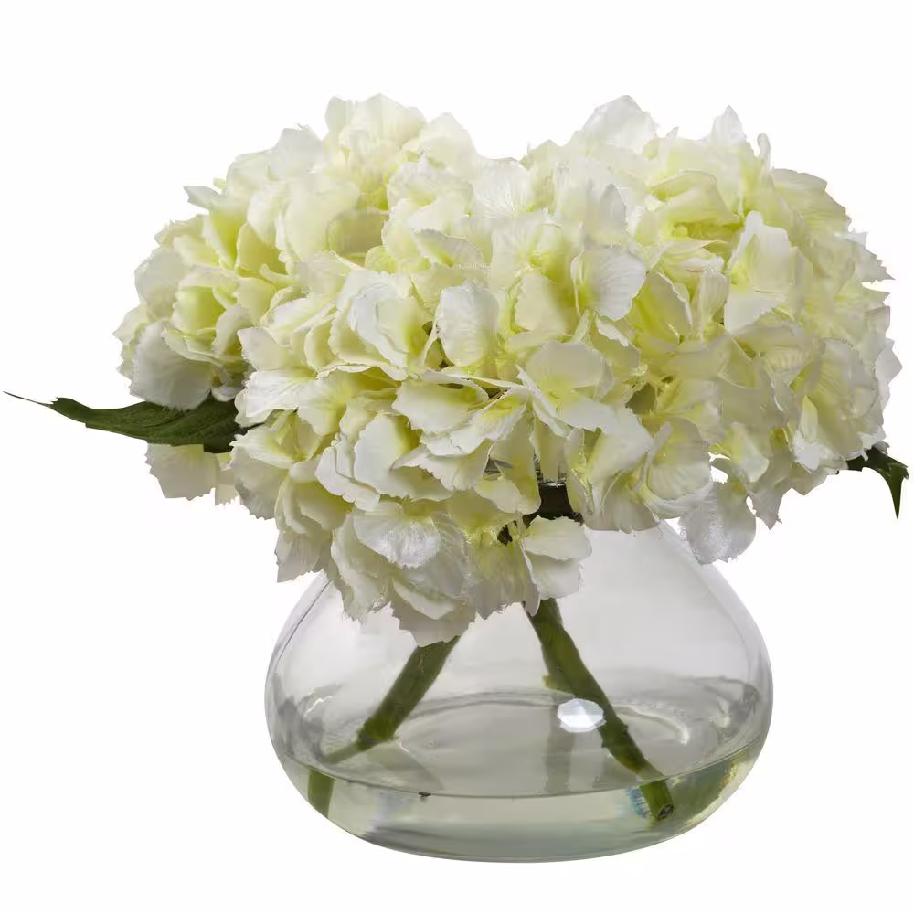 Nearly Natural 23 in. H White Large Hydrangea with Vase Silk Flower Arrangement