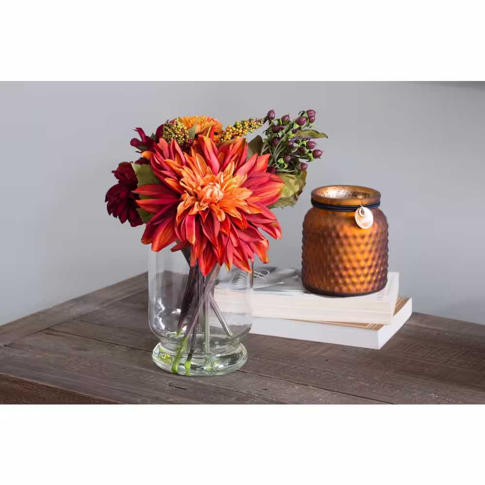 Nearly Natural 14 in. Artificial Peony Silk Flower Arrangement with Glass Vase