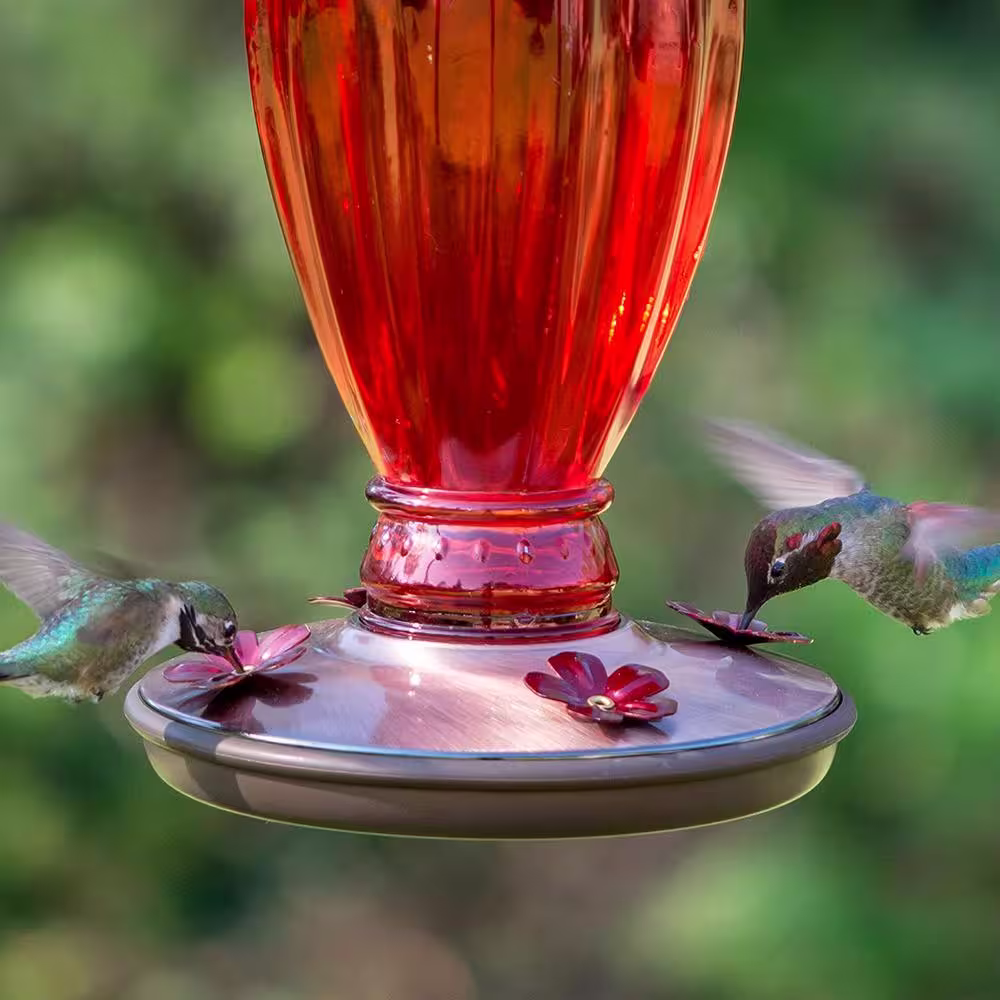 Perky-Pet Red Daisy Vase Decorative Glass Hummingbird Feeder - 18 oz. Capacity