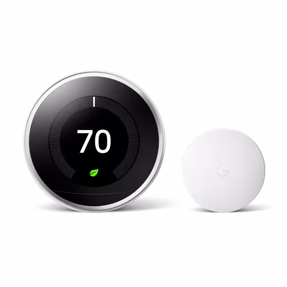 Google Nest Learning Thermostat - Smart Wi-Fi Thermostat Polished Steel + Nest Temperature Sensor