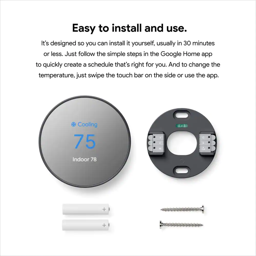 Google Nest Thermostat - Smart Programmable Wi-Fi Thermostat - Charcoal