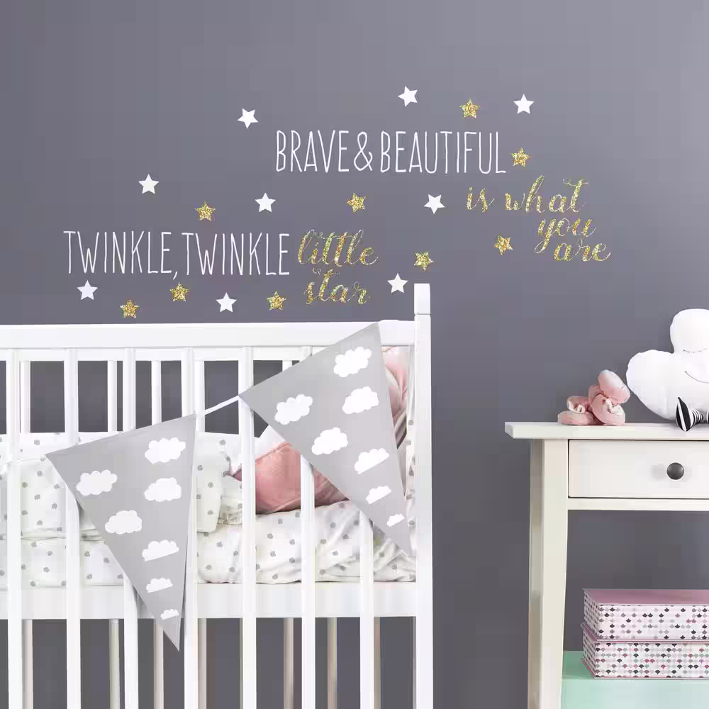 RoomMates 5 in. x 11.5 in. Twinkle Twinkle Little Star Quote 29-Piece Peel and Stick Wall Decals with Glitter
