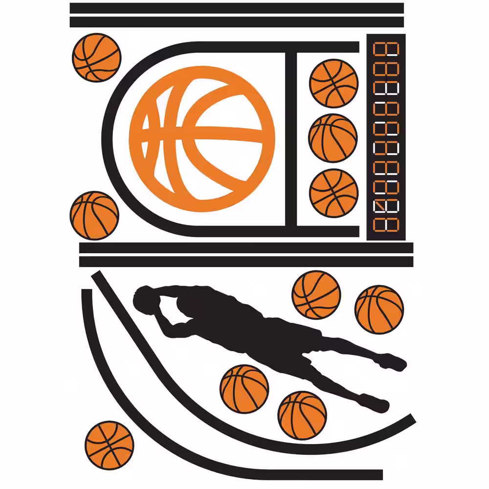 RoomMates BASKETBALL COURT ORANGE/BLACK XL GIANT PEEL and STICK WALL DECALS WITH GLOW (Set of 20 decals)
