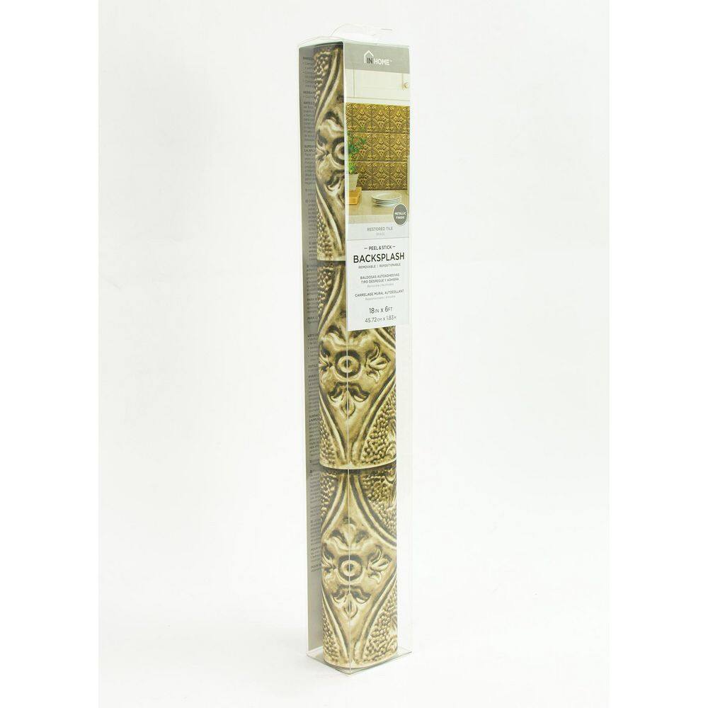 InHome Restored Tile Brass Brown Matte Peel and Stick Backsplash Wall Decal