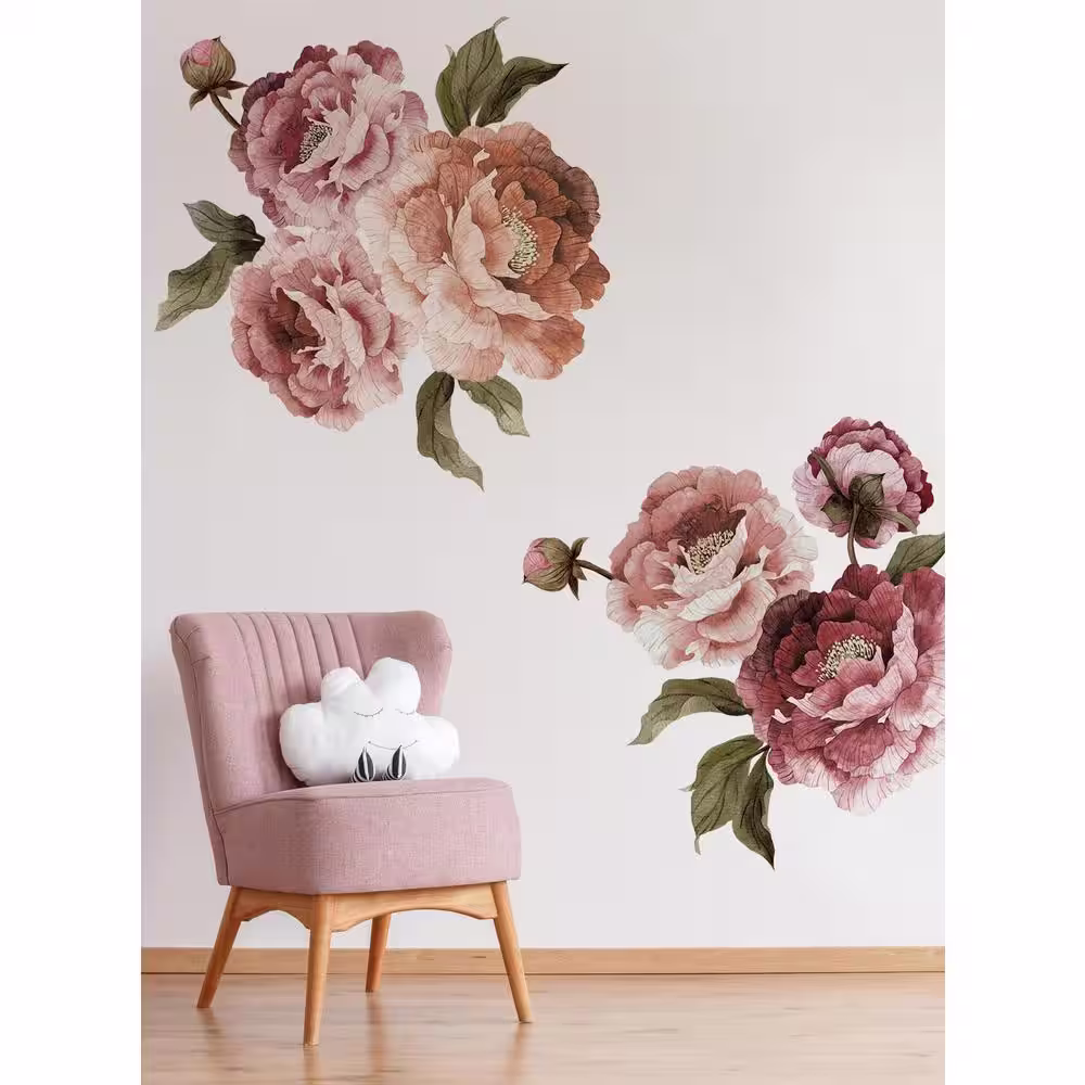 RoomMates 5 in. x 19 in. Black and White Flower Scroll 22-Piece Peel and Stick Giant Wall Decal