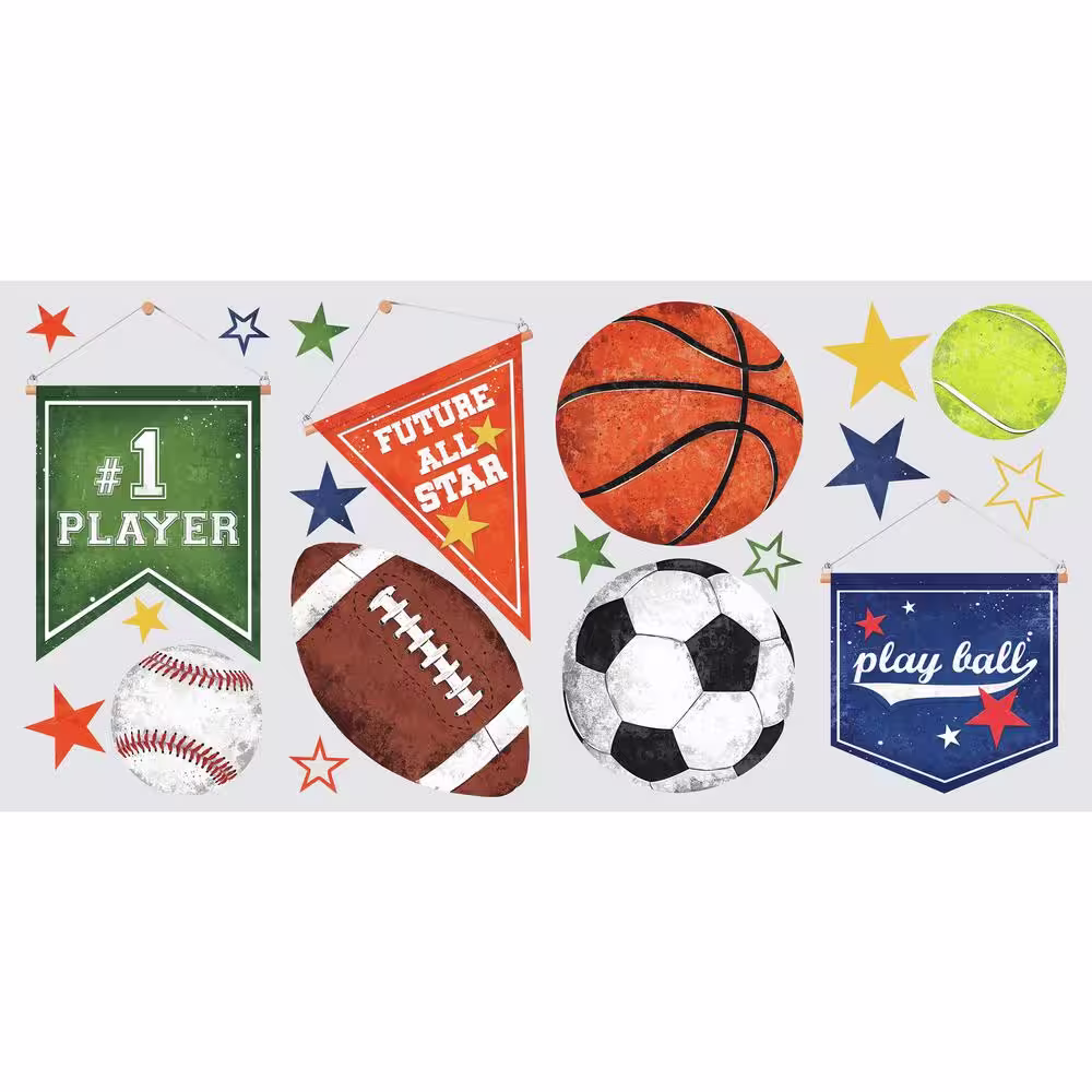 RoomMates 5 in. x 11.5 in. 20-Piece Sports Ball Peel and Stick Wall Decals