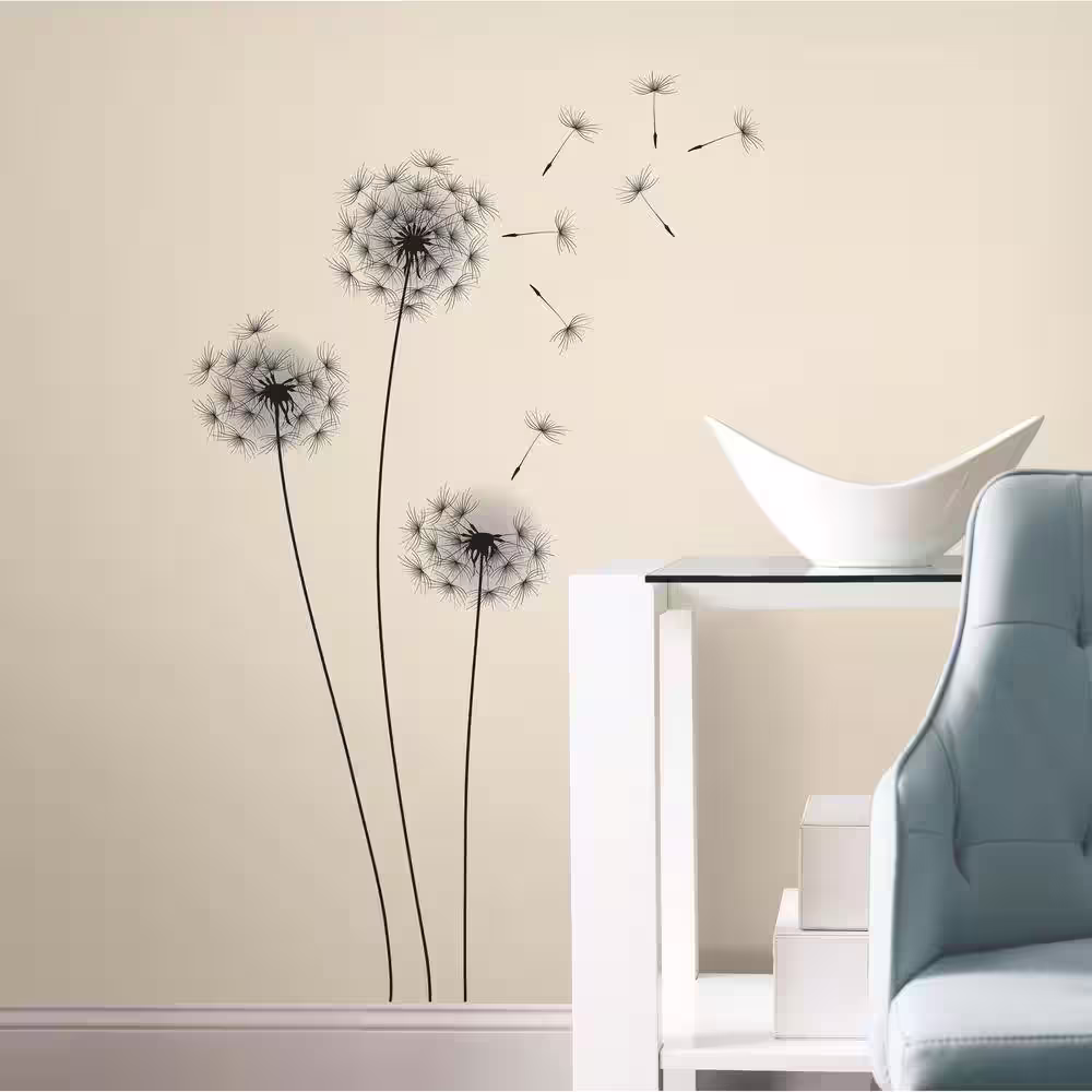 RoomMates 19 in. Black Whimsical Dandelion Peel and Stick Giant Wall Decals